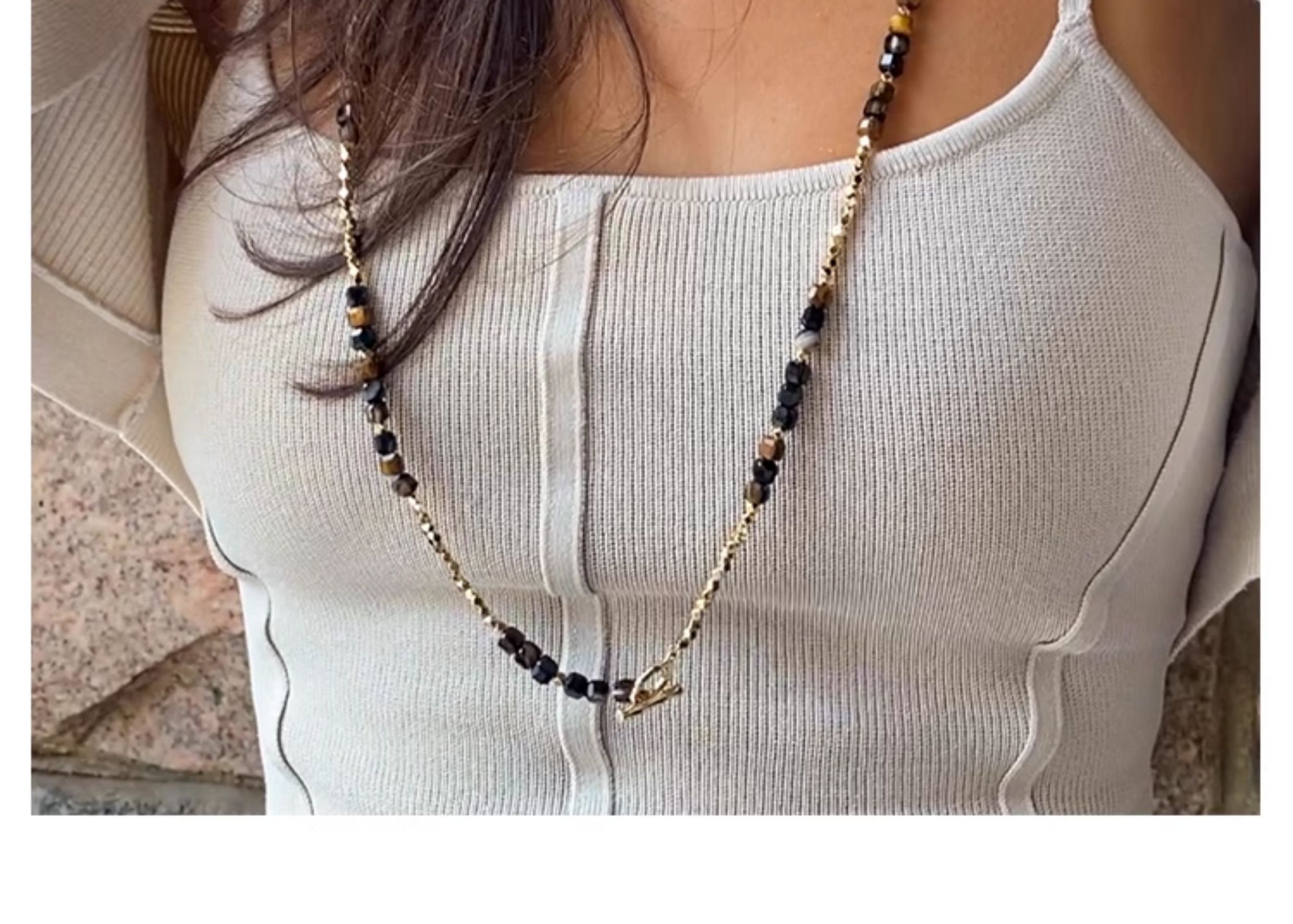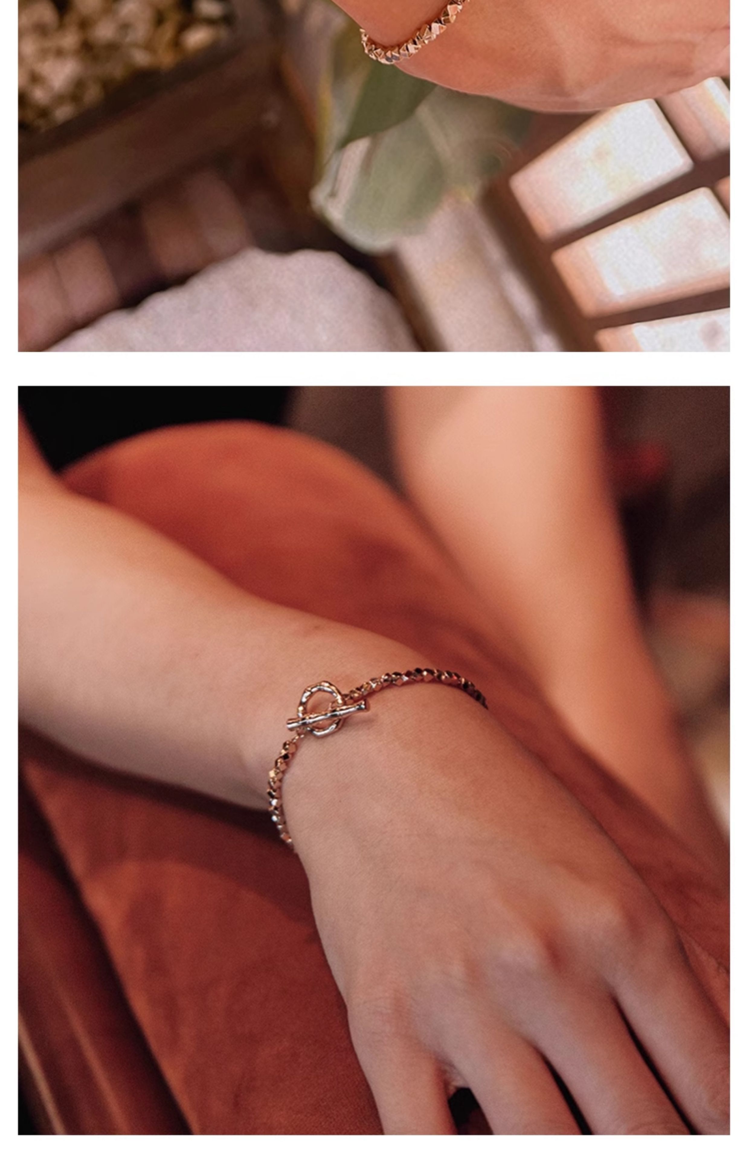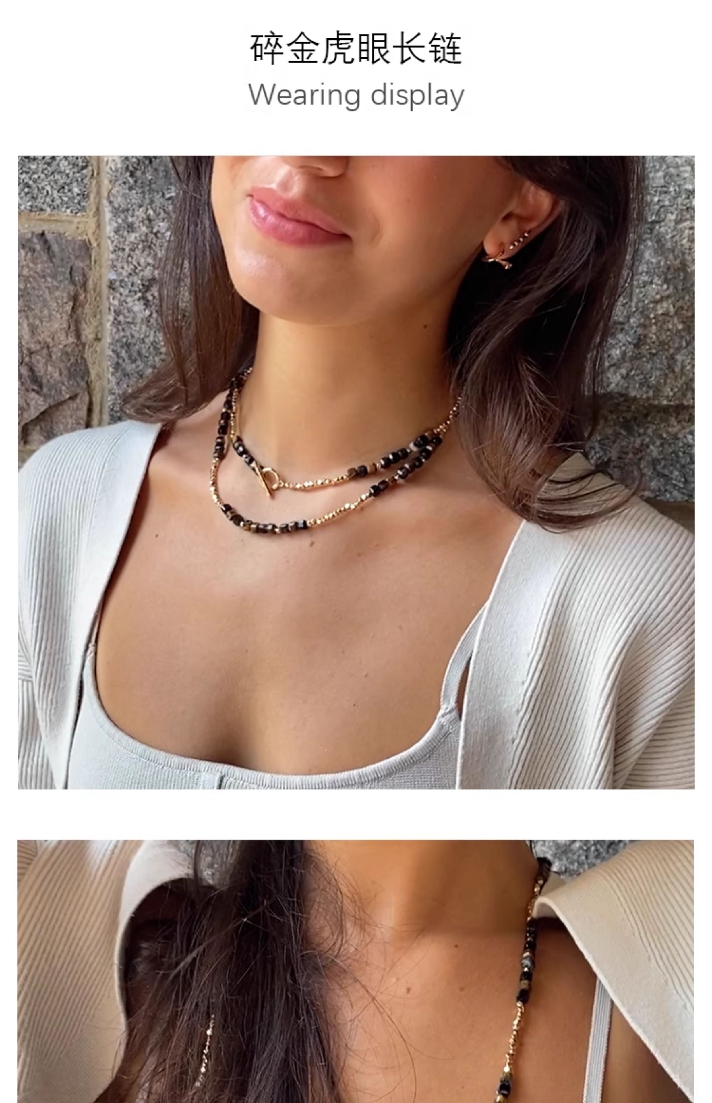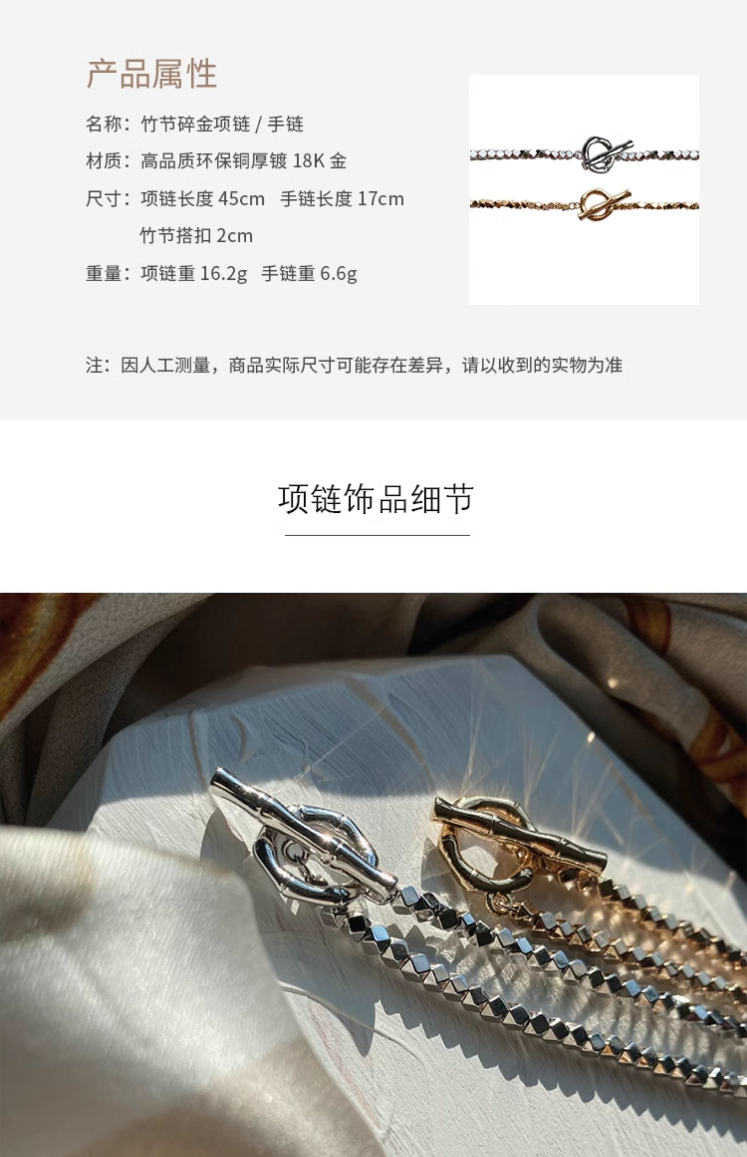 LHWINDSOR 竹节碎石项链复古风韧竹锁骨链百搭手链项链套装