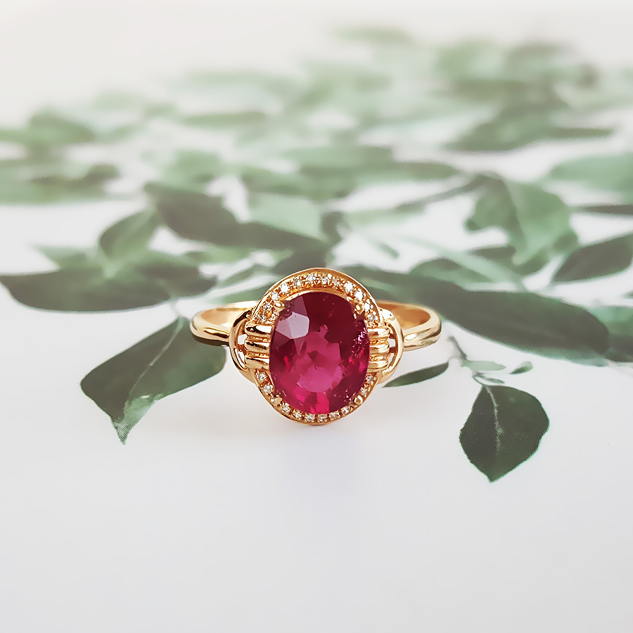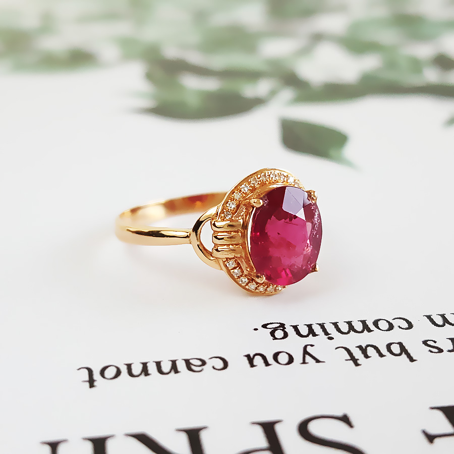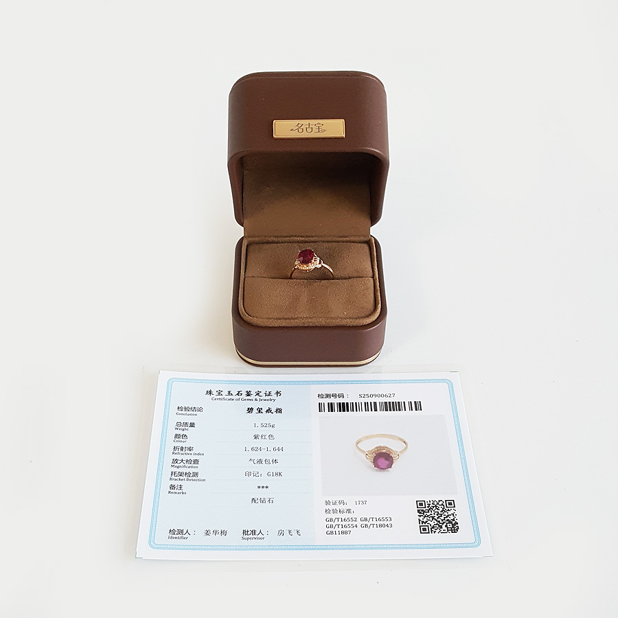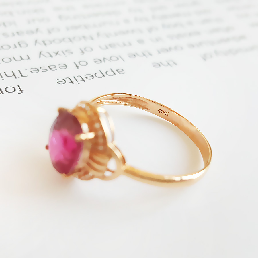 名称 | AU750玫瑰金镶钻镶天然近1克拉卢比莱碧玺戒指 |