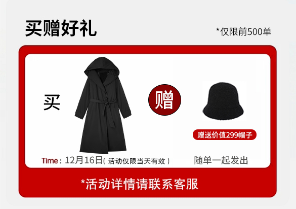 NORNS LADY诺恩 冬季新款女式连帽收腰长款休闲外套 H25WS04962