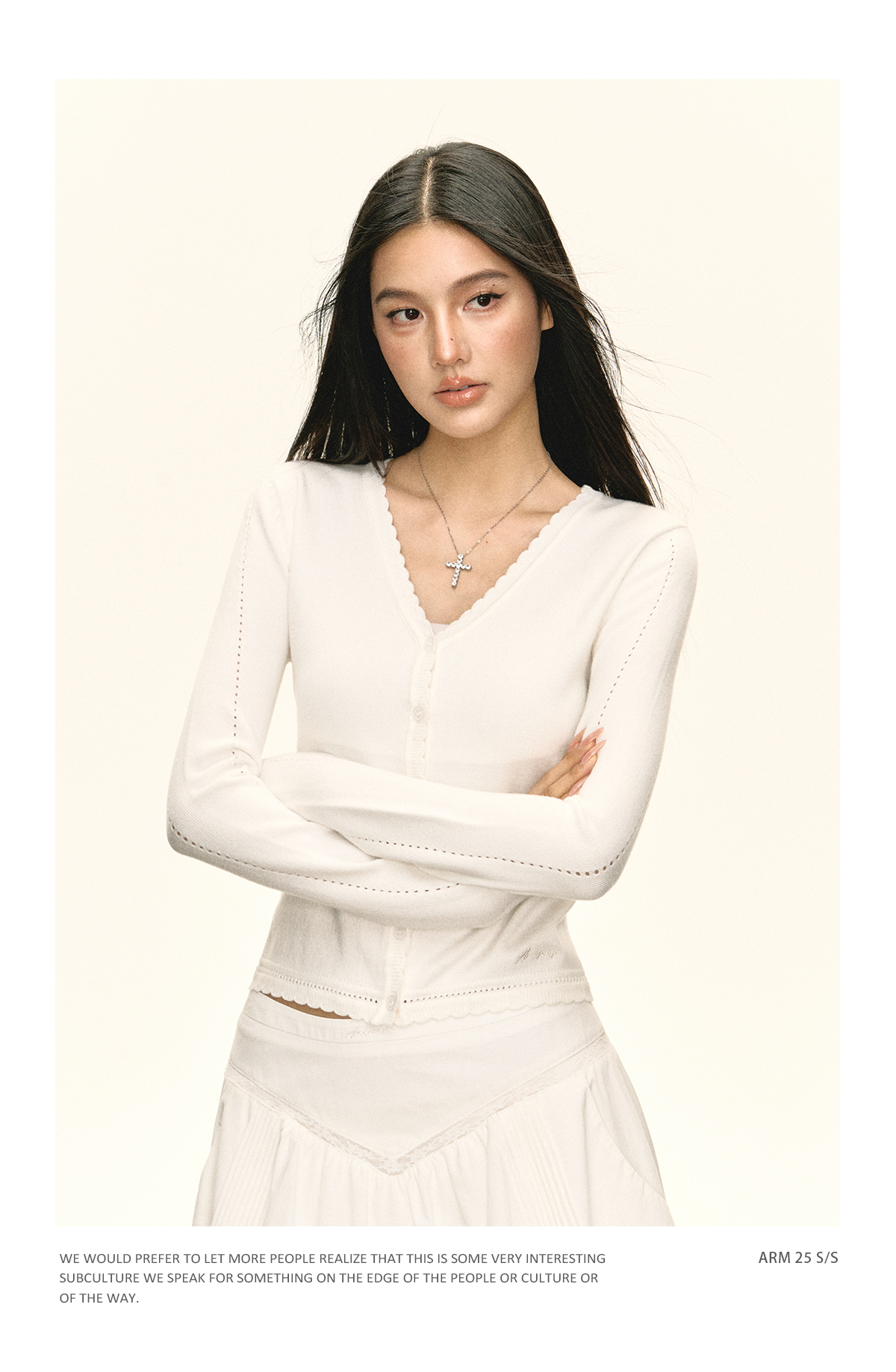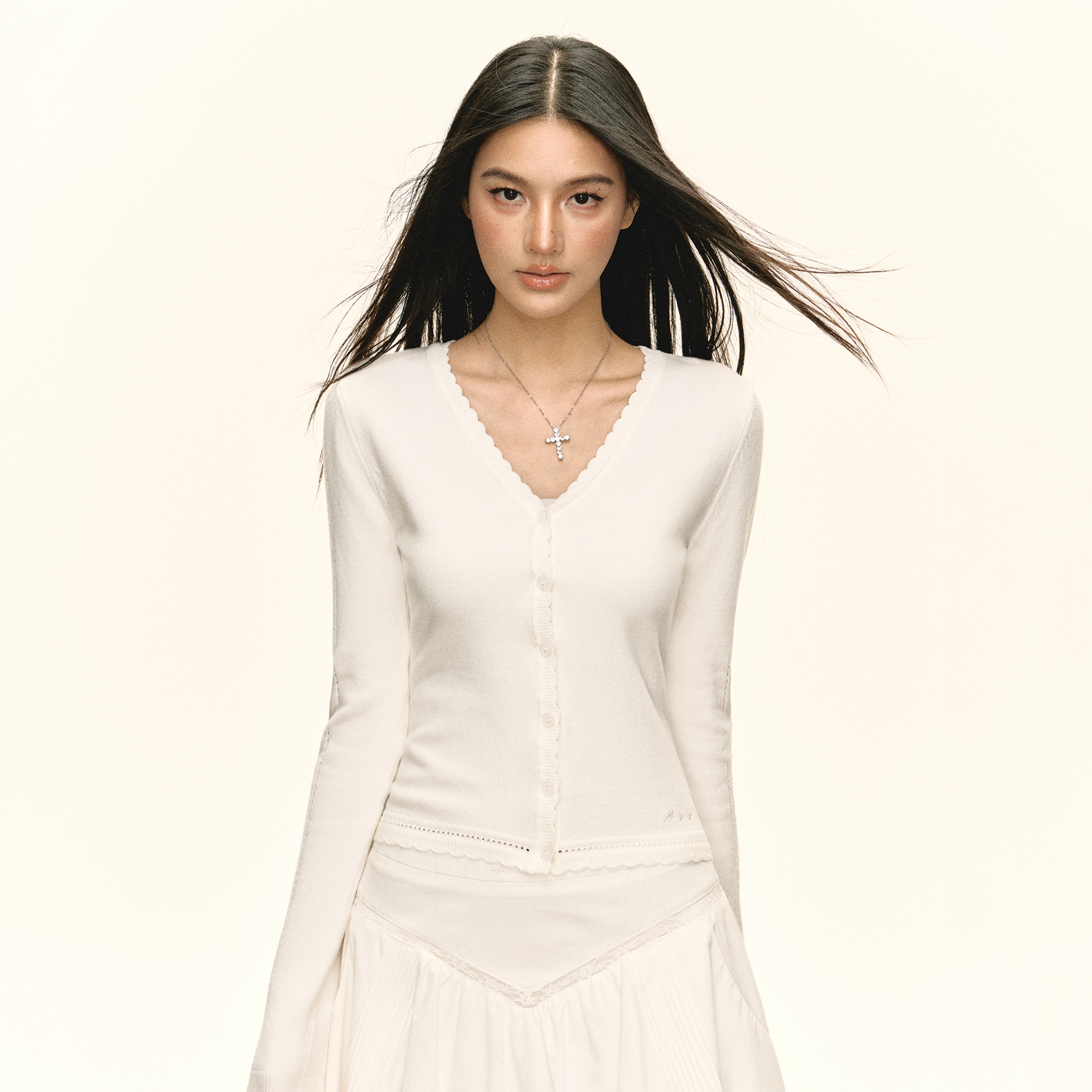 Ariseism 美式复古基础百搭白色v领针织开衫女秋季新款修身上衣