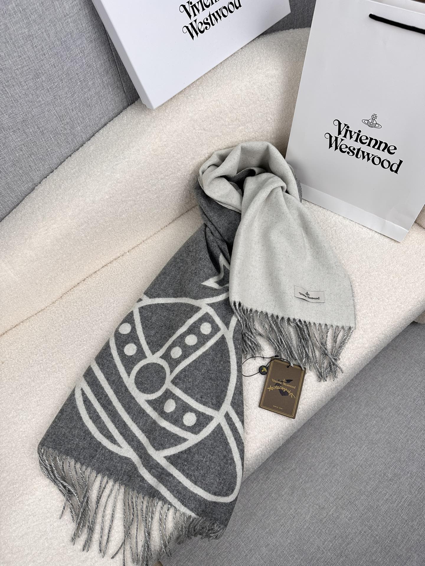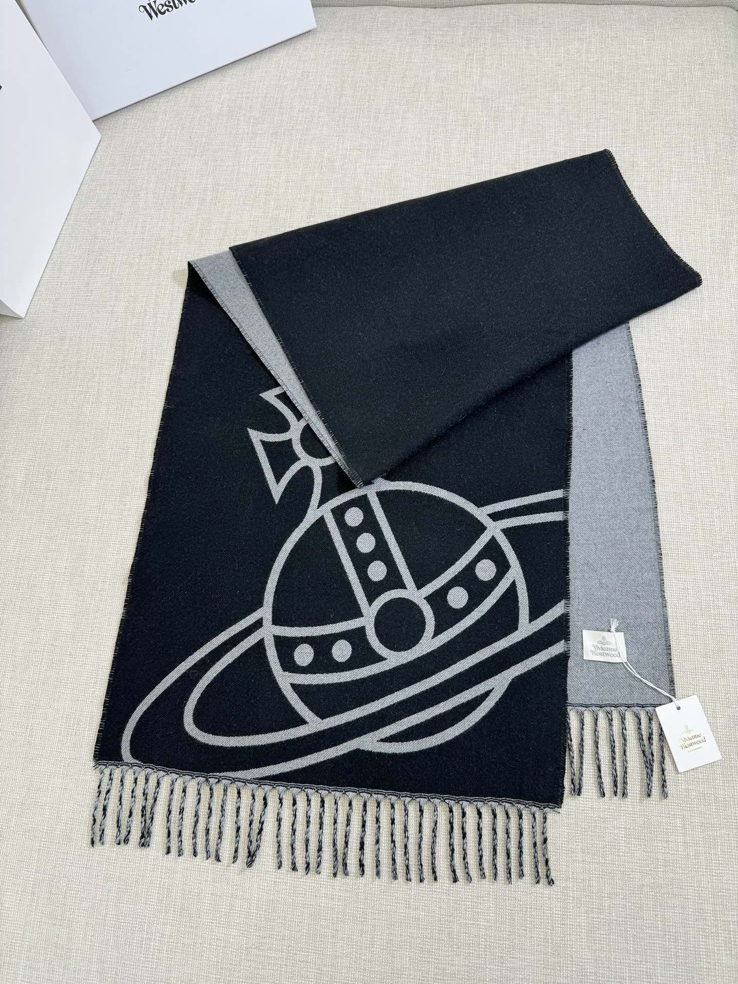 从精神上,Vivenne Westwood才是最能代表英国人的时尚品牌.本季强推的一款产品.大“土星”Logo提花,土星的意义也是和西太后的设计理念是一致的.面料采用了95%最具张力羊毛,5%羊绒.尺寸:200*50