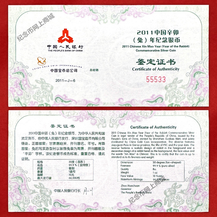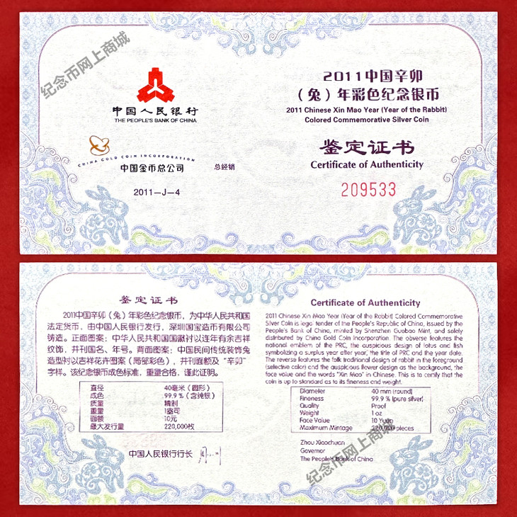 2011年兔年1盎司银币 封装评级 带礼盒 带证书