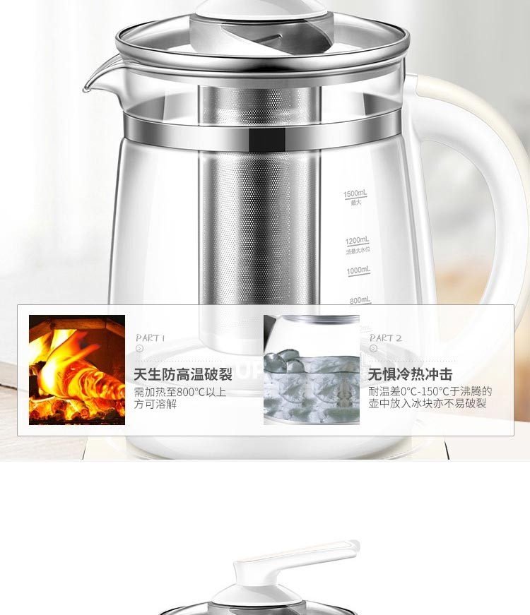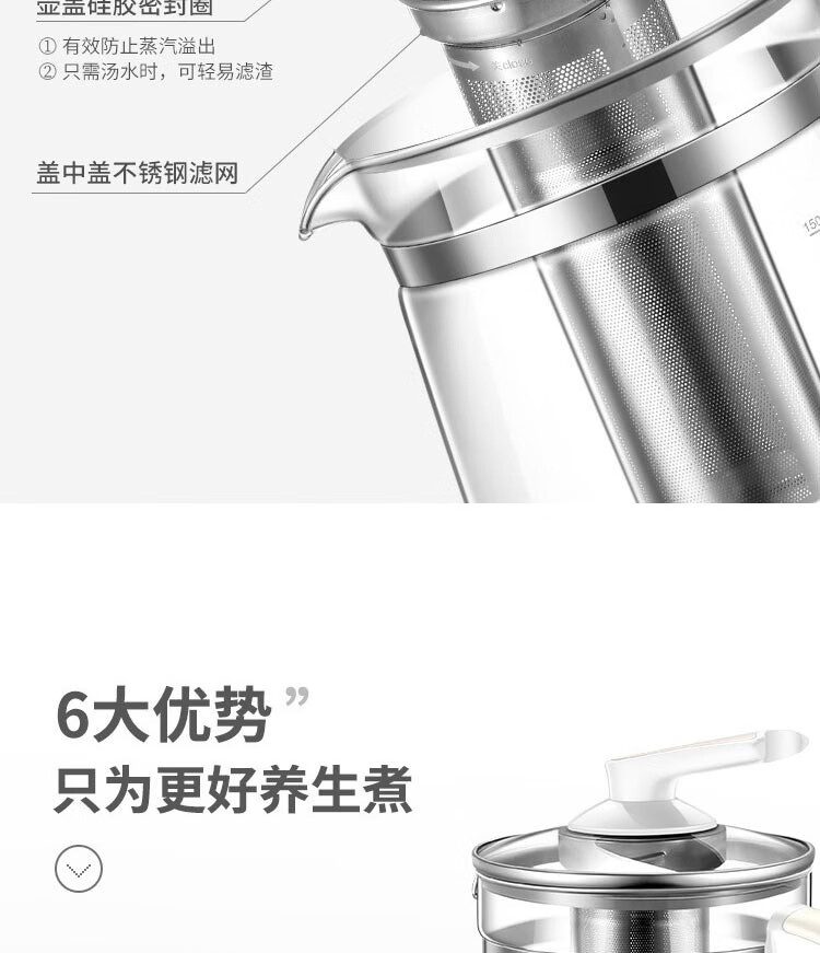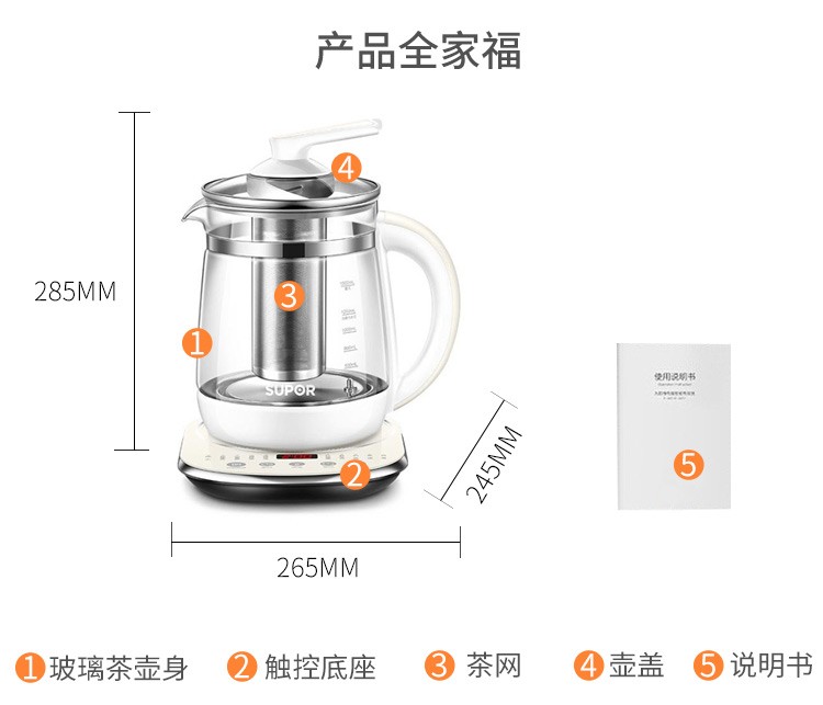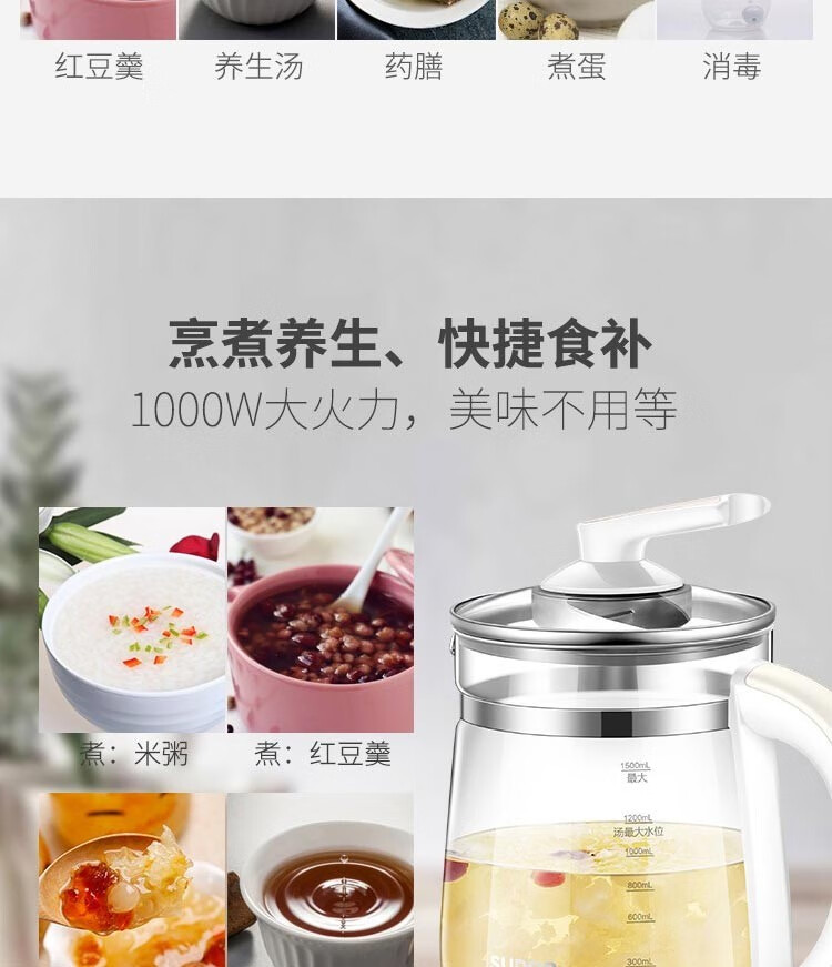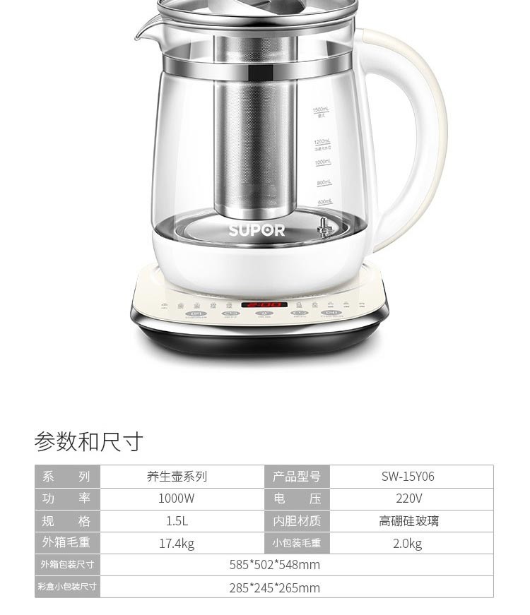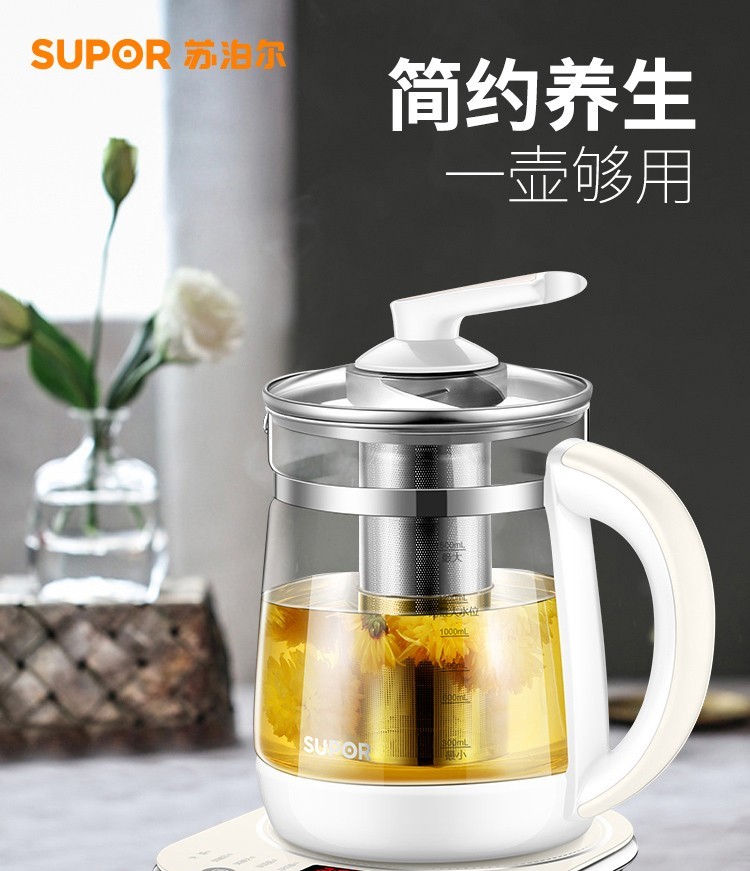 苏泊尔(SUPOR) 养生壶 1.5L大容量加厚玻璃多功能煮水壶 电煮茶壶 电热水壶 烧开水壶 SW-15Y06单层壶身