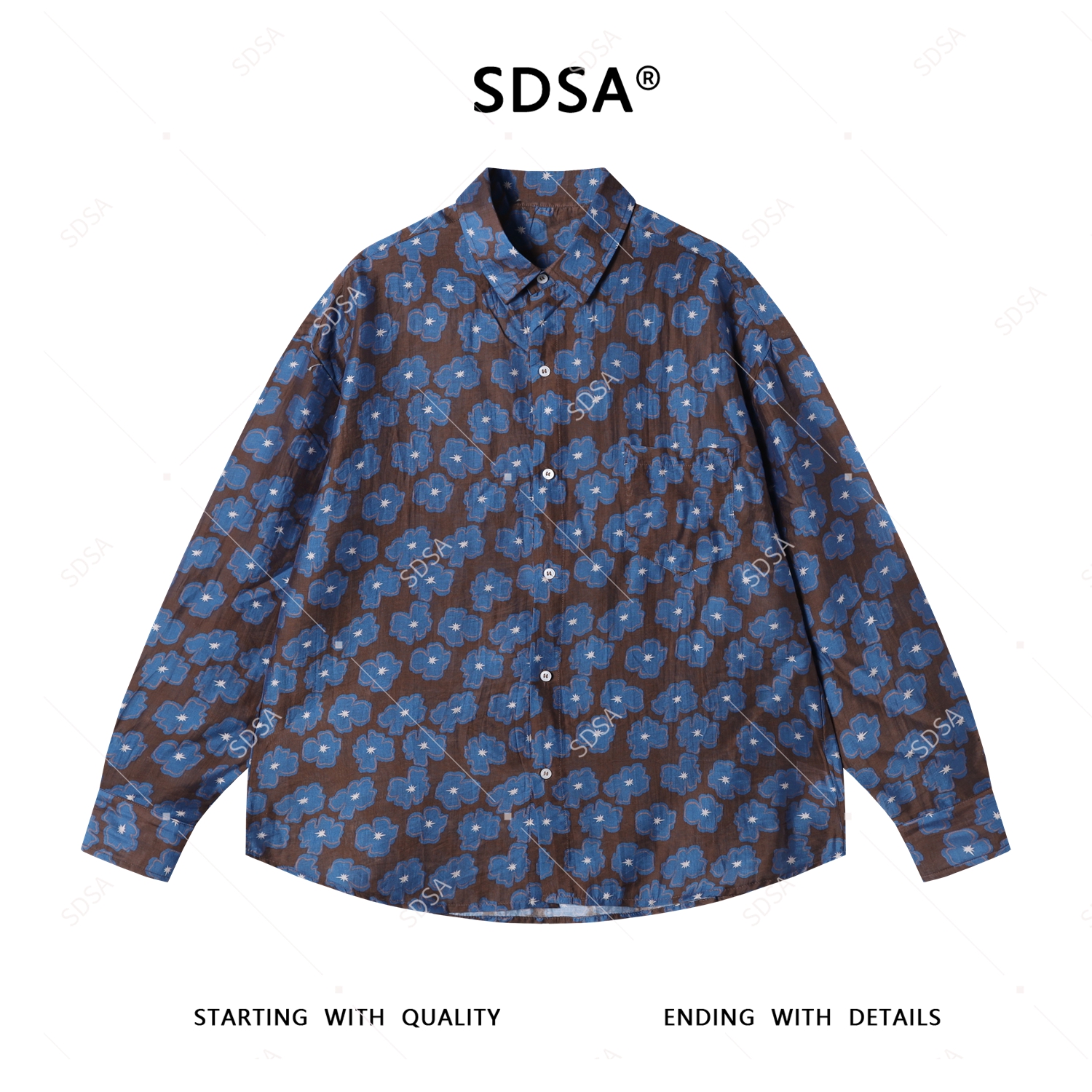 82322SDSA秋季新款男士痞帅韩版撞色满印花卉长袖衬衫时尚休闲复古上衣