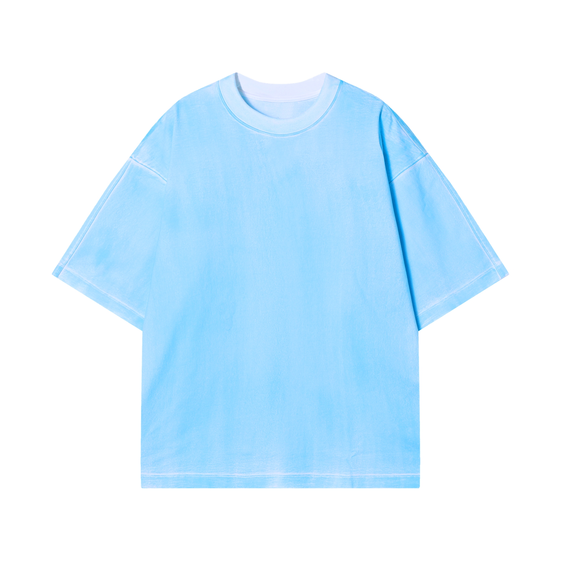 413112潮流纯色水洗设计男女同款情侣短袖时尚百搭上衣宽松T恤