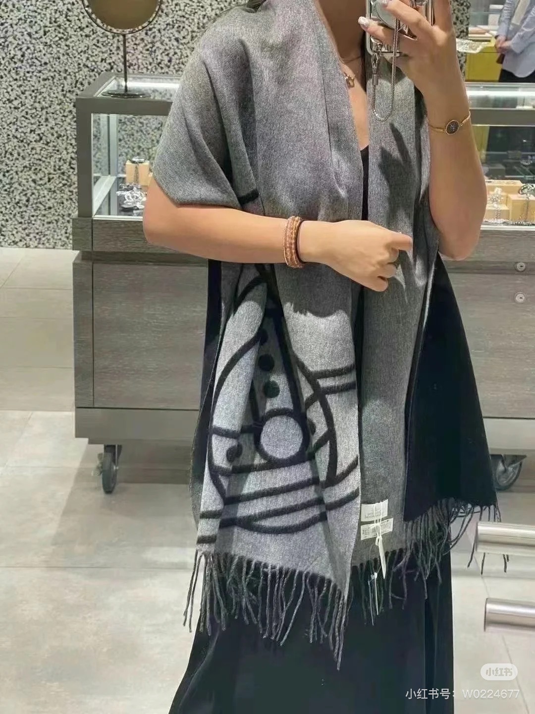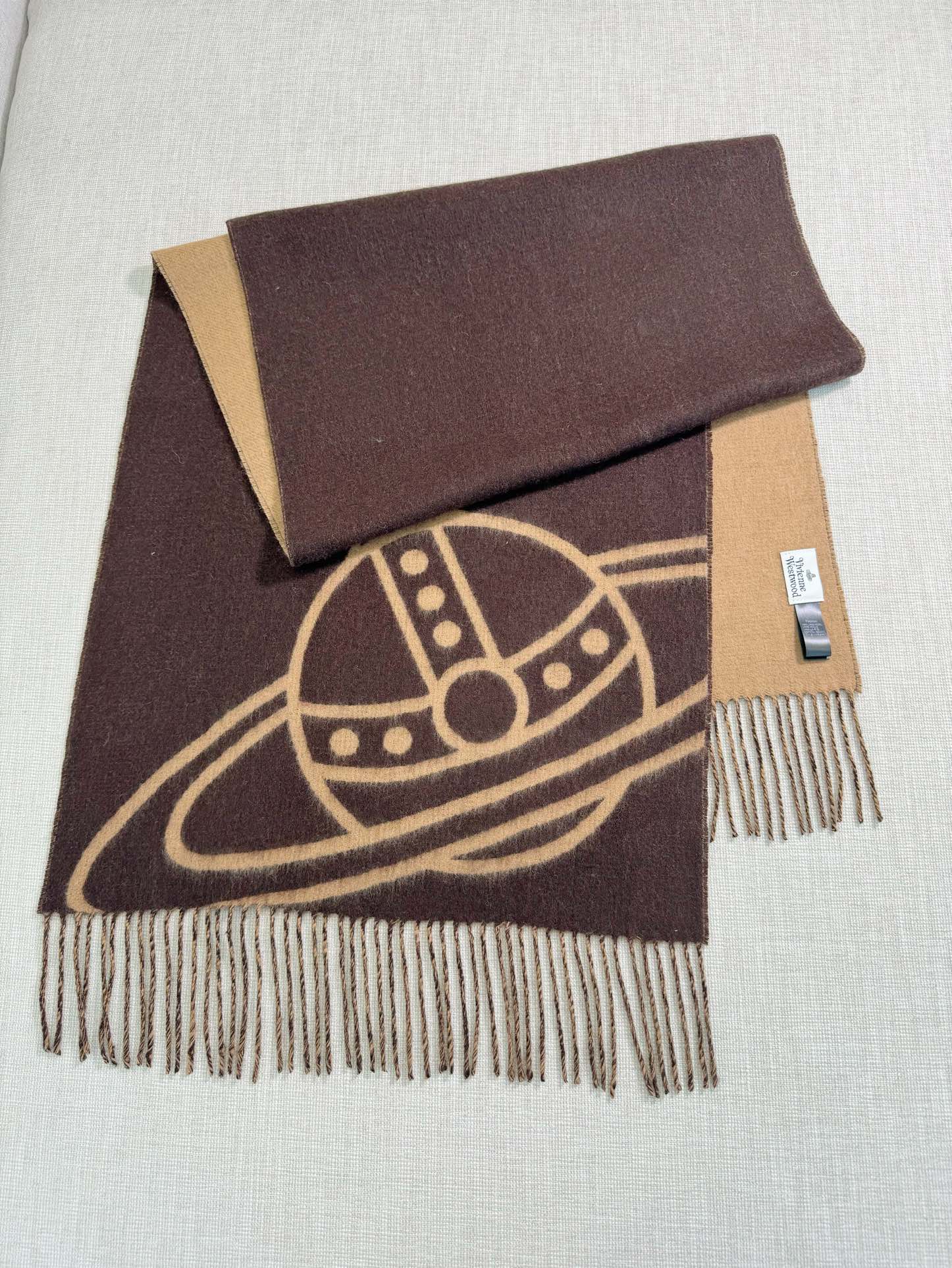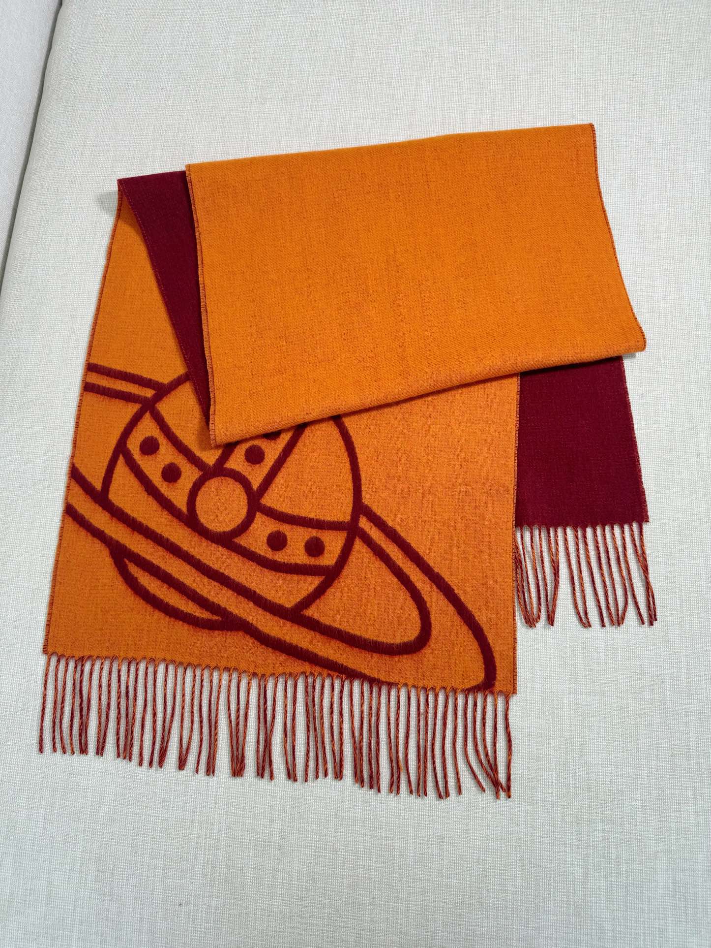 从精神上,Vivienne Westwood才是最能代表英国人的时尚品牌.本季强推的一款产品.大“土星”Logo提花,土星的意义也是和西太后的设计理念是一致的.面料采用了95%最具张力羊毛,5%羊绒.尺寸:200*50,双面设计,手感柔软不扎手,超级受追捧的爆款!时尚个性选折!