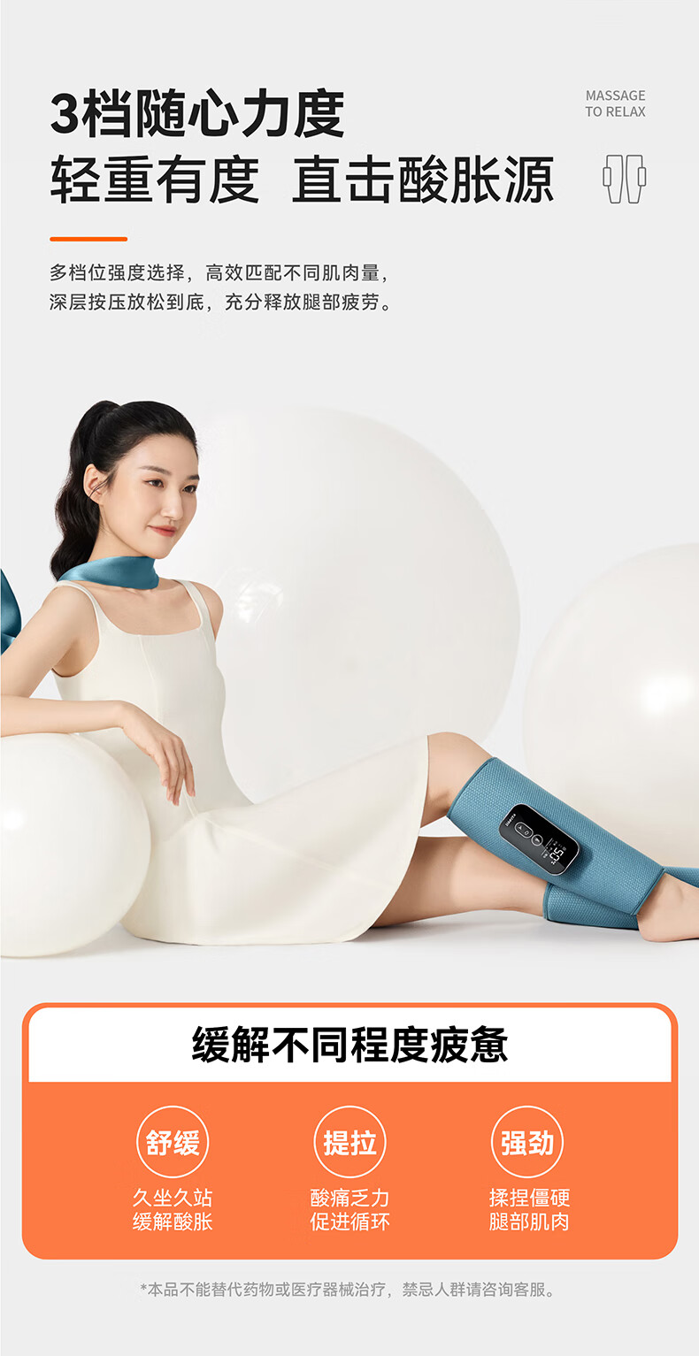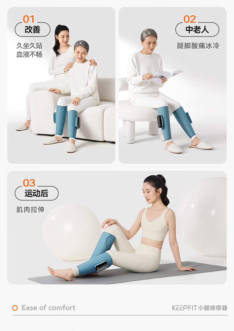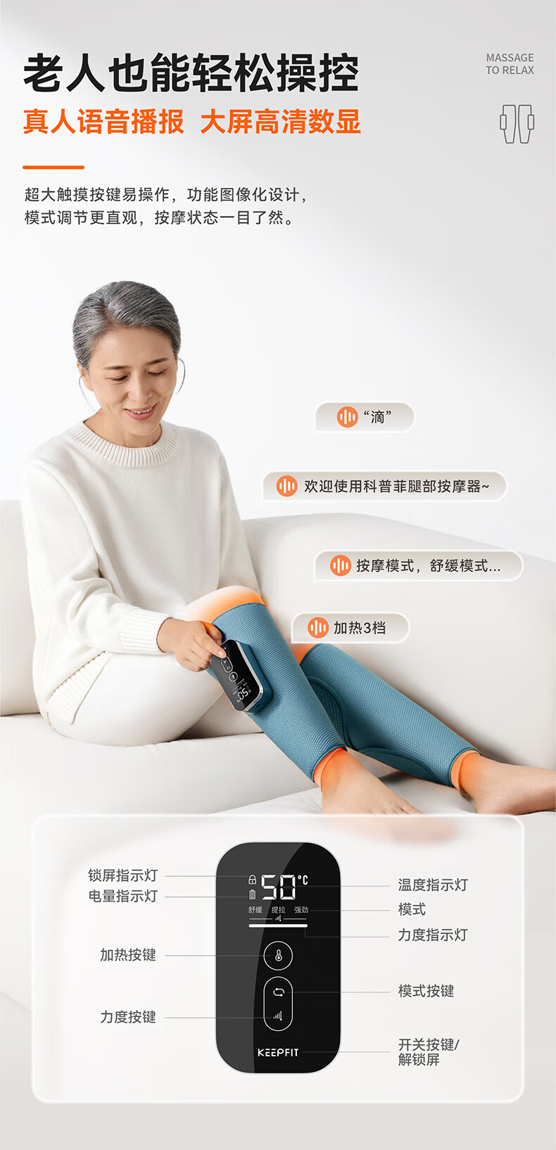 科普菲 腿部按摩器空气波气囊揉捏大小腿静脉仪器捏腿神器曲张膝盖热敷肌肉放松 KPF-Leg07-2