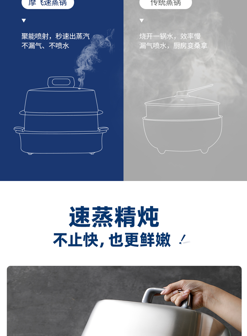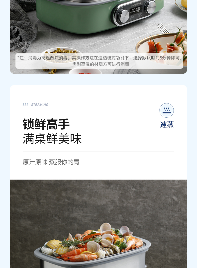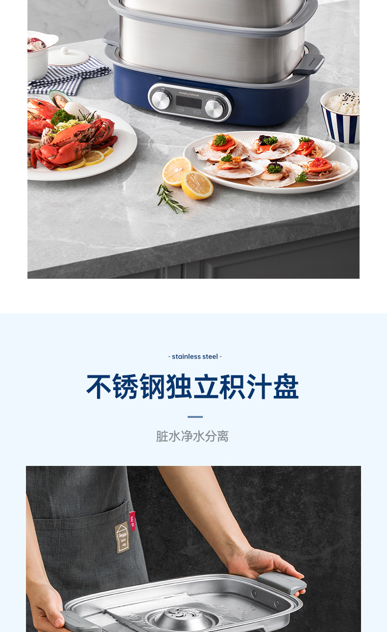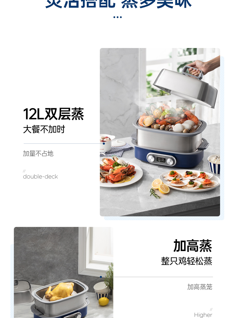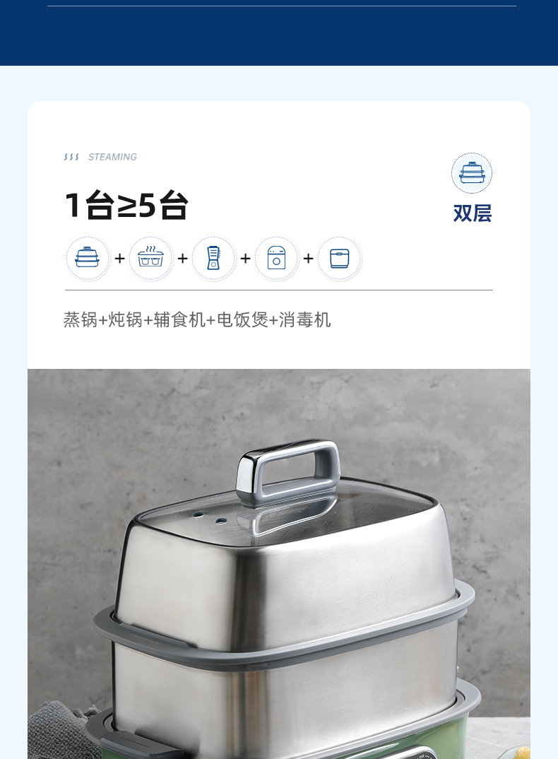 摩飞极速双层蒸锅电蒸锅多功能家用蒸煮炖蒸烤箱不锈钢多层蒸汽锅MR1168新