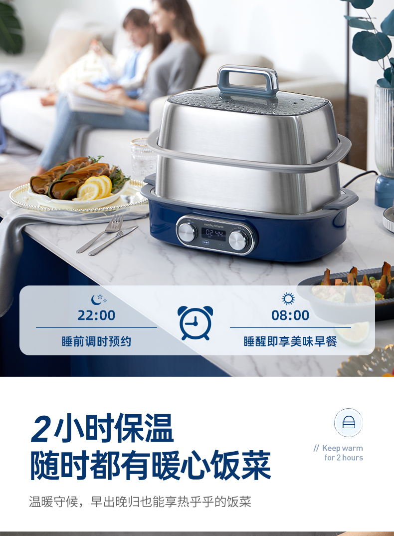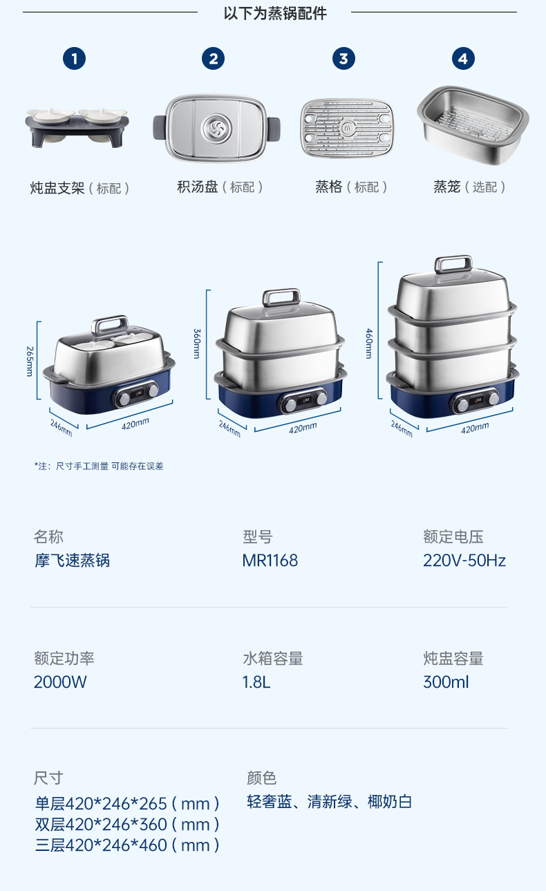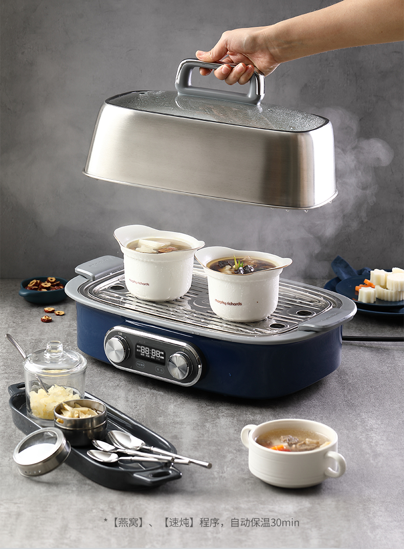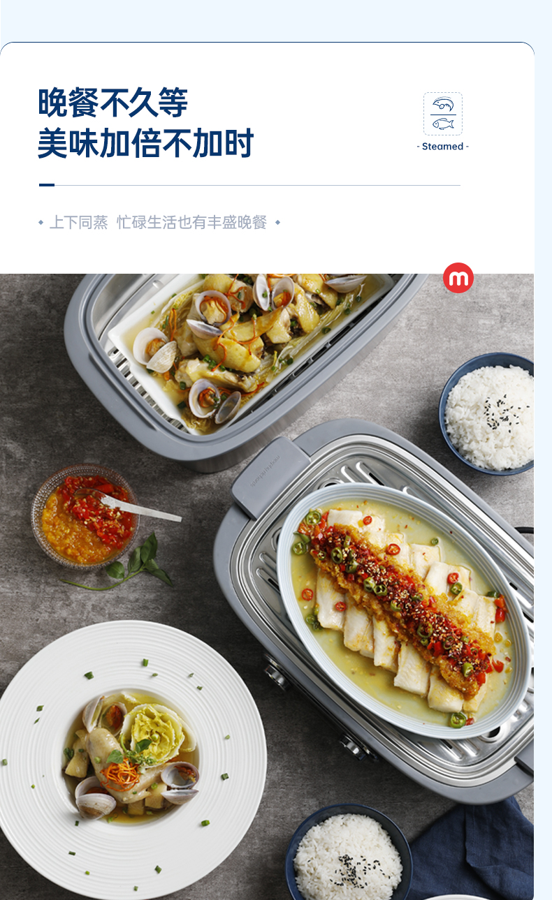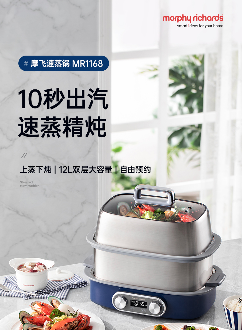 摩飞极速双层蒸锅电蒸锅多功能家用蒸煮炖蒸烤箱不锈钢多层蒸汽锅MR1168新