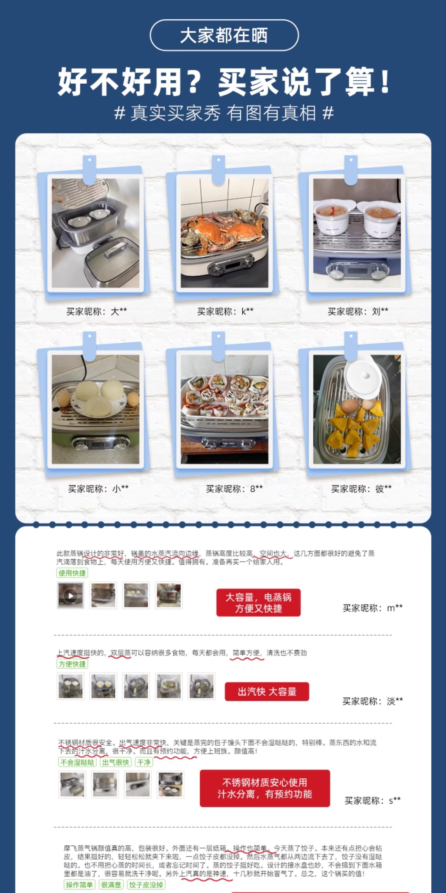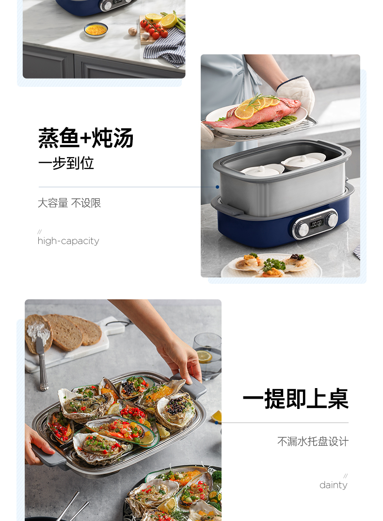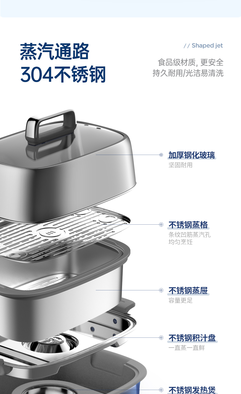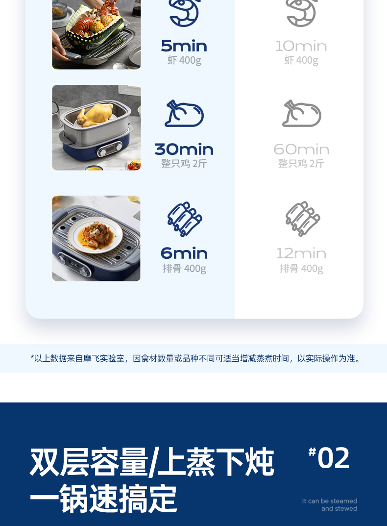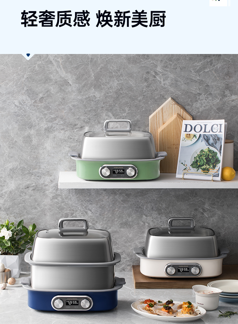 摩飞极速双层蒸锅电蒸锅多功能家用蒸煮炖蒸烤箱不锈钢多层蒸汽锅MR1168新