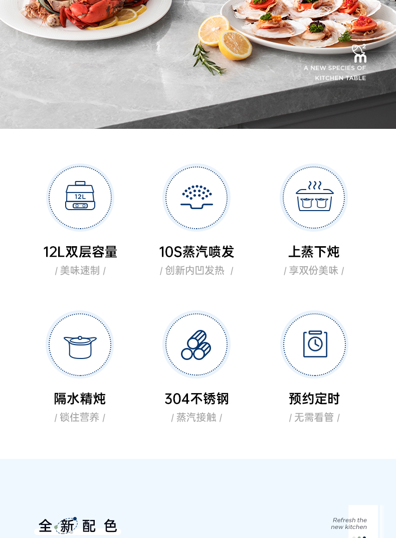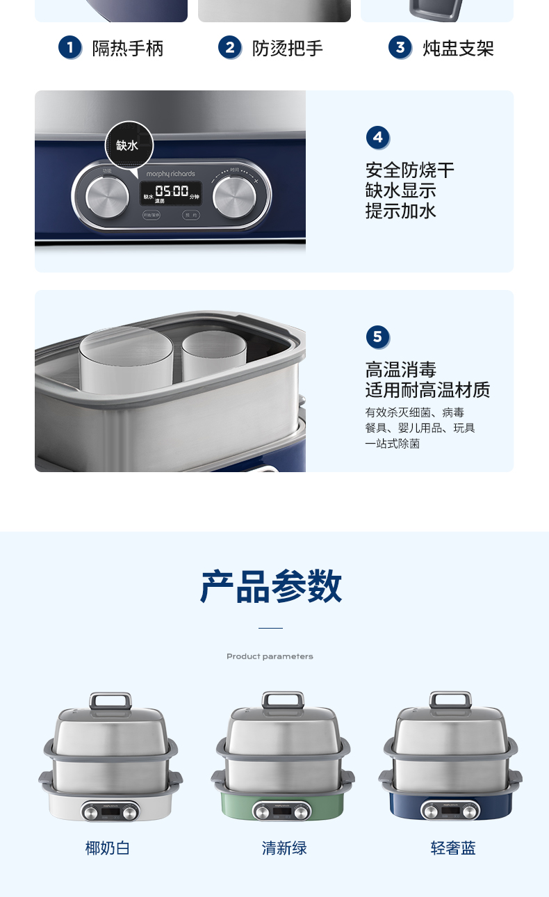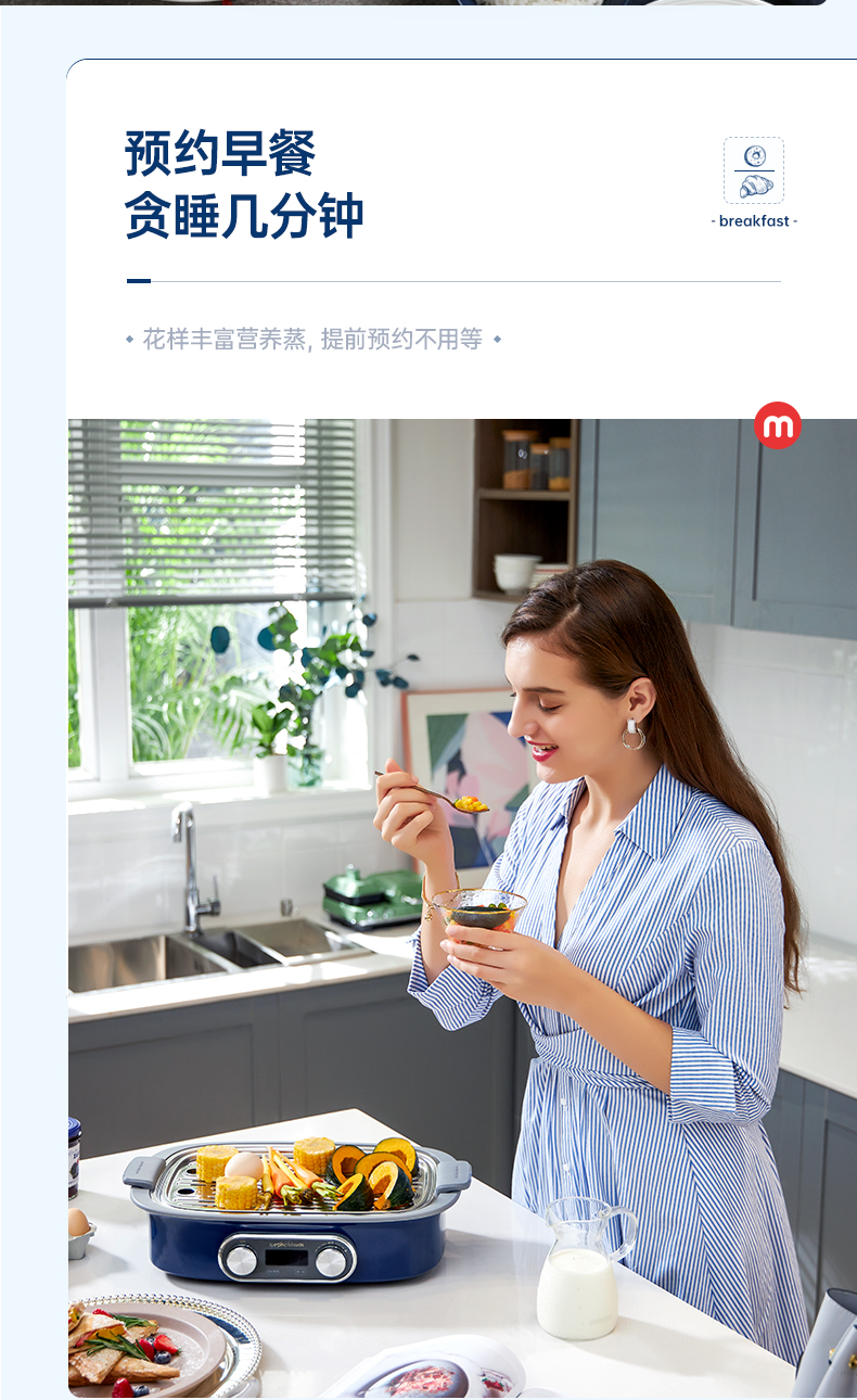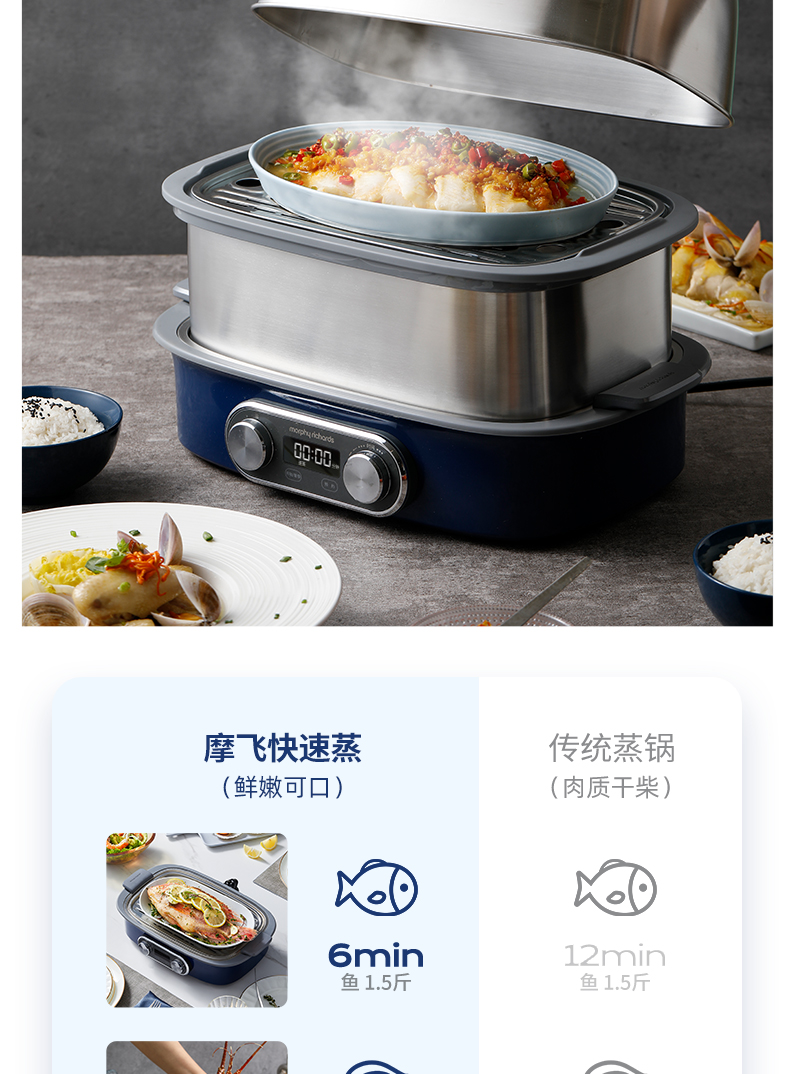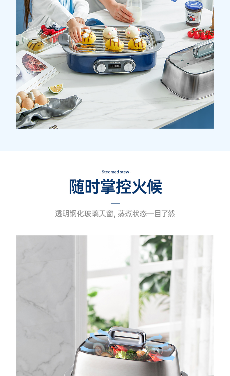 摩飞极速双层蒸锅电蒸锅多功能家用蒸煮炖蒸烤箱不锈钢多层蒸汽锅MR1168新
