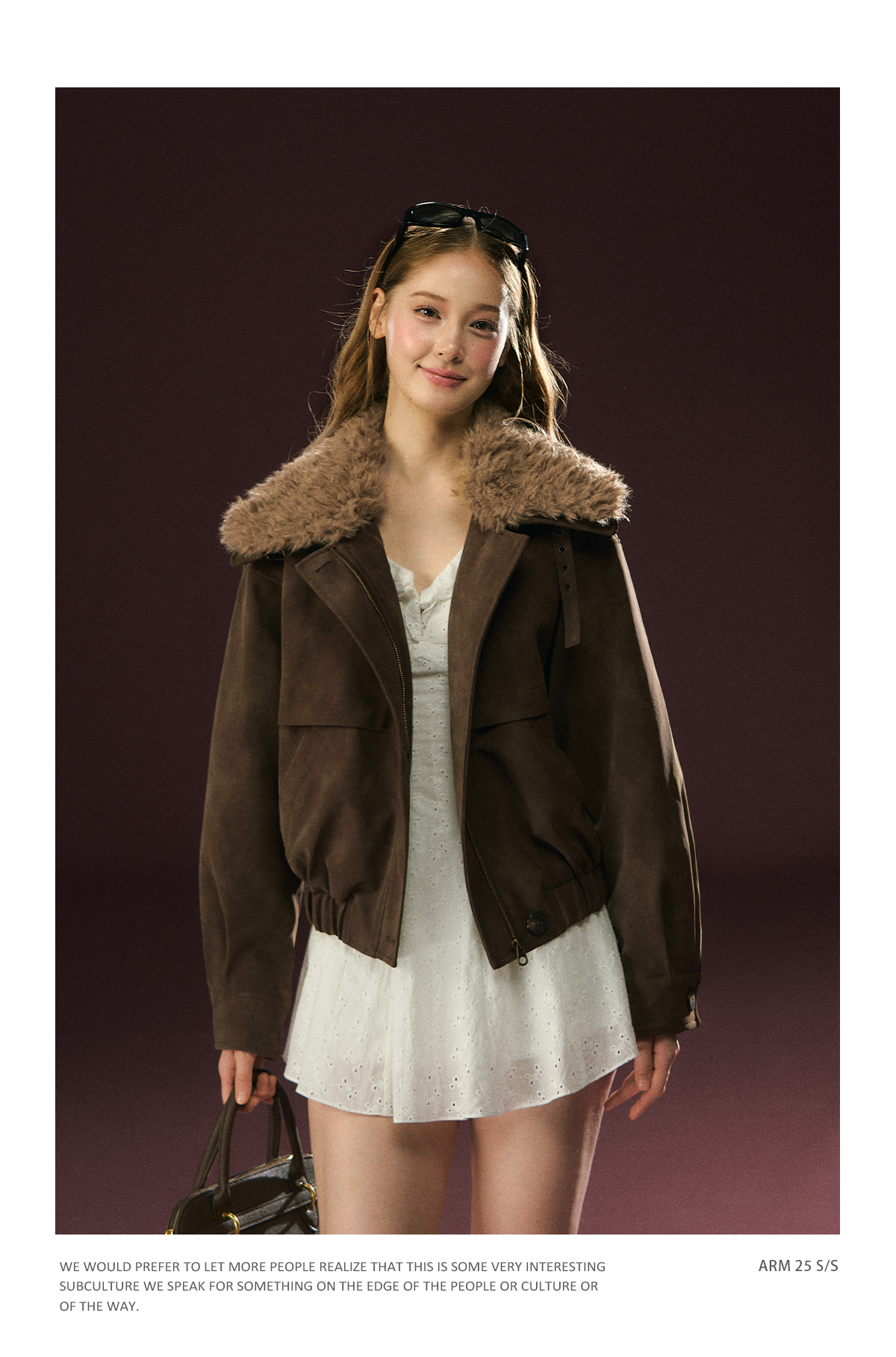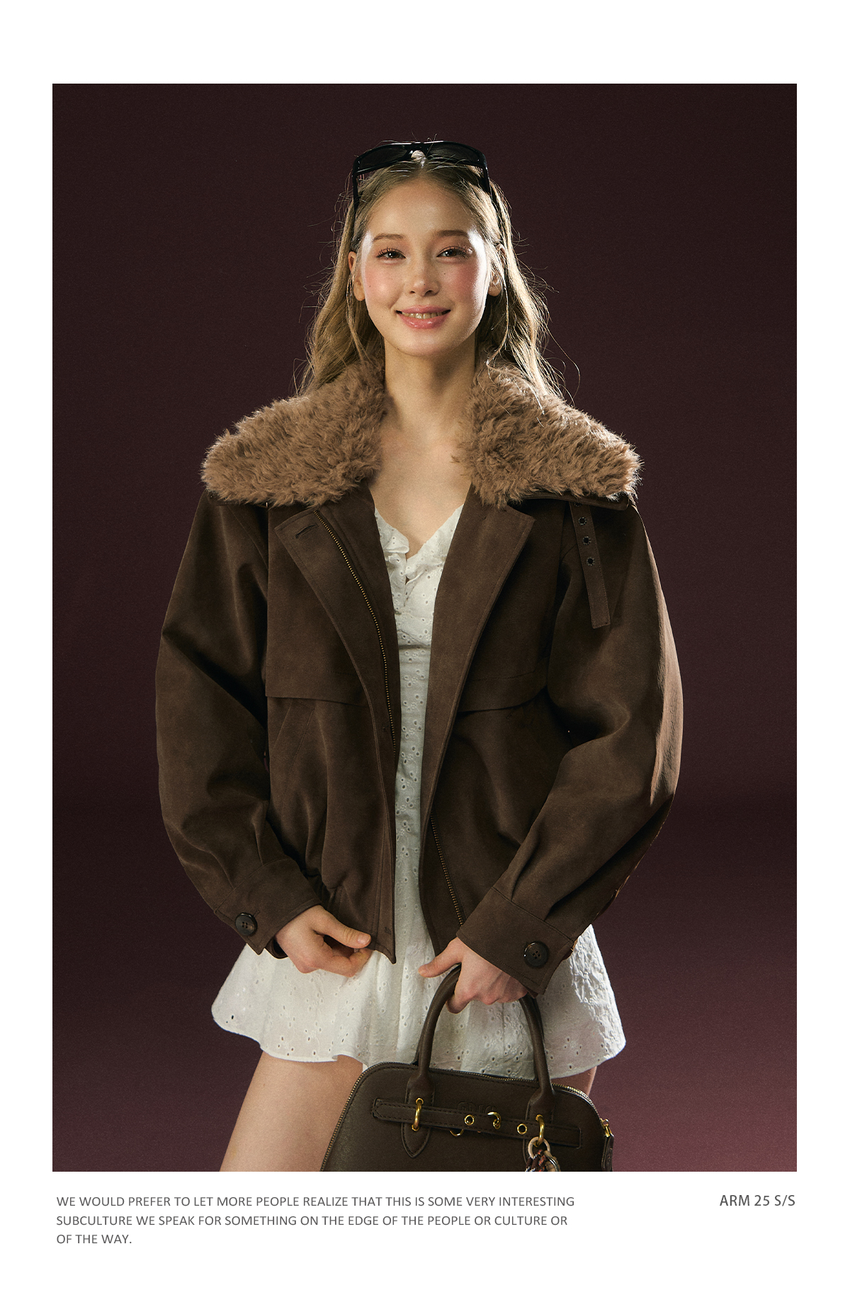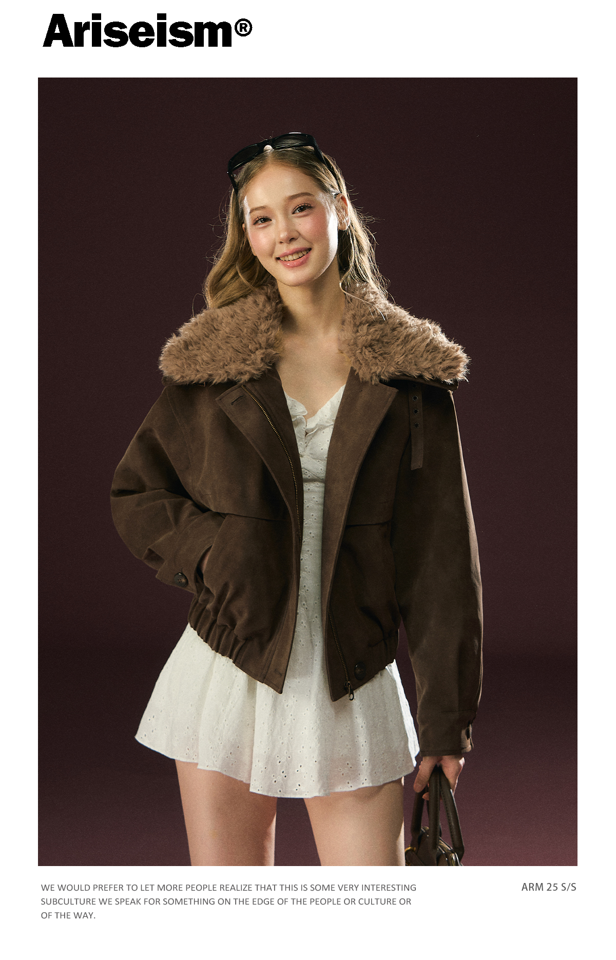 Ariseism 美式复古设计感可拆卸毛领夹棉棉服女秋冬新款外套