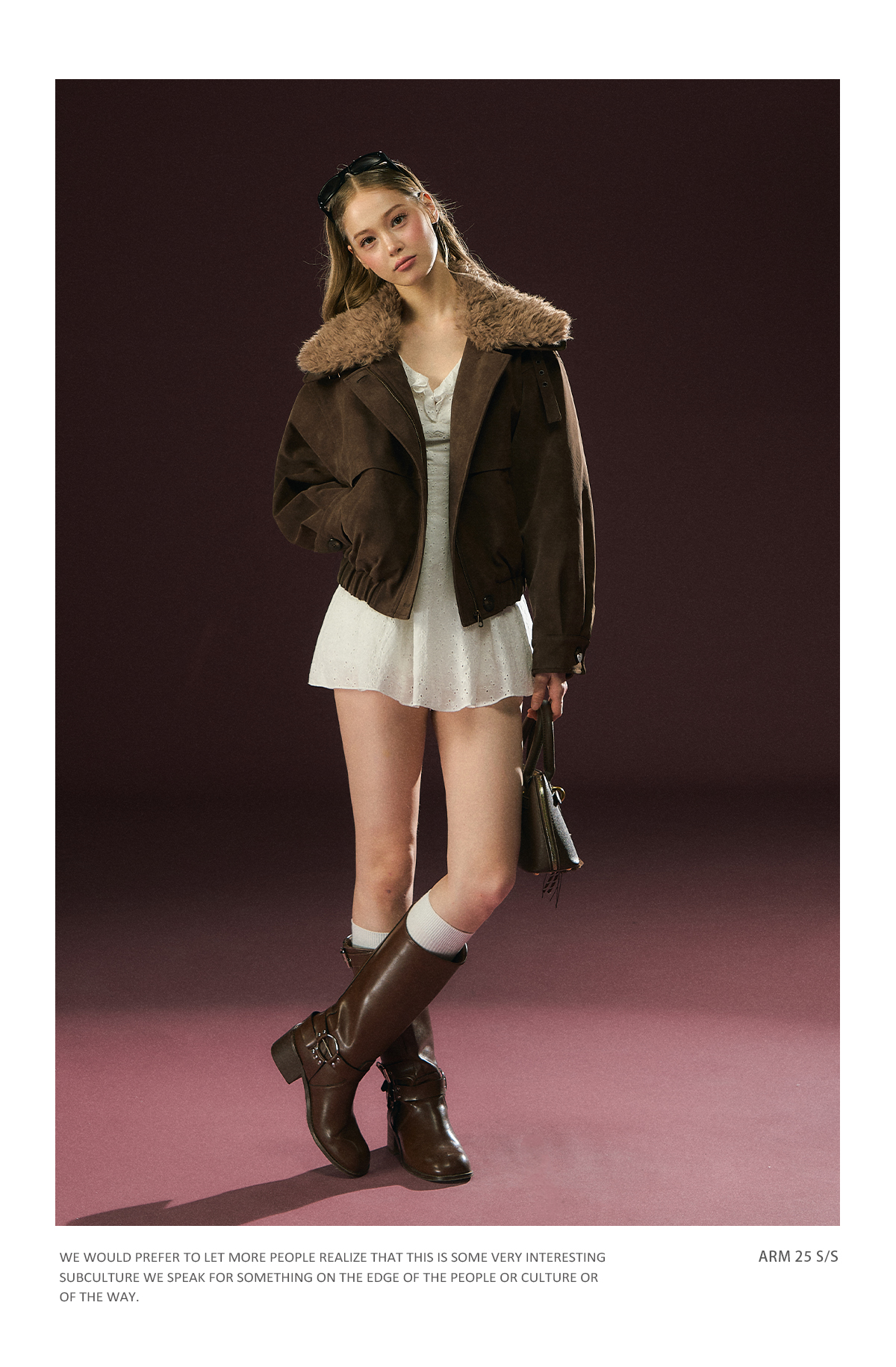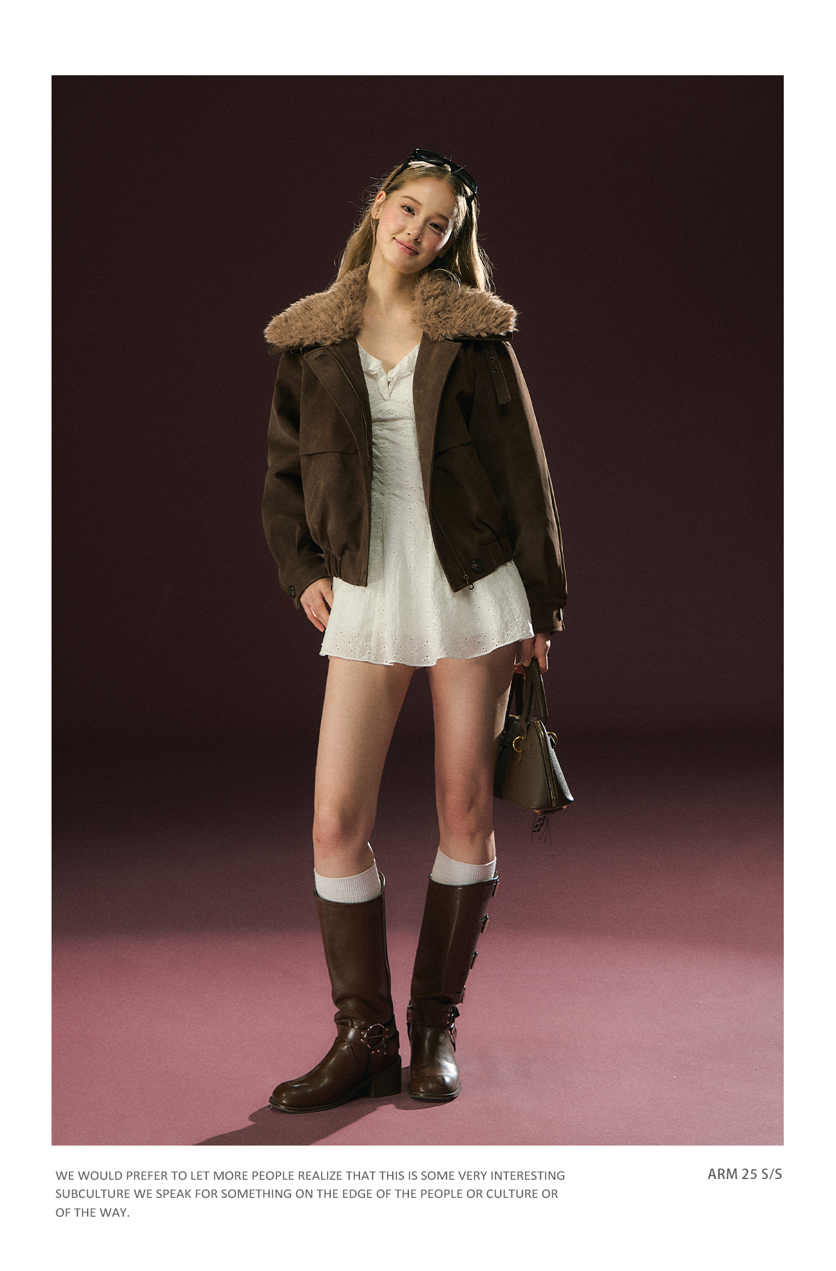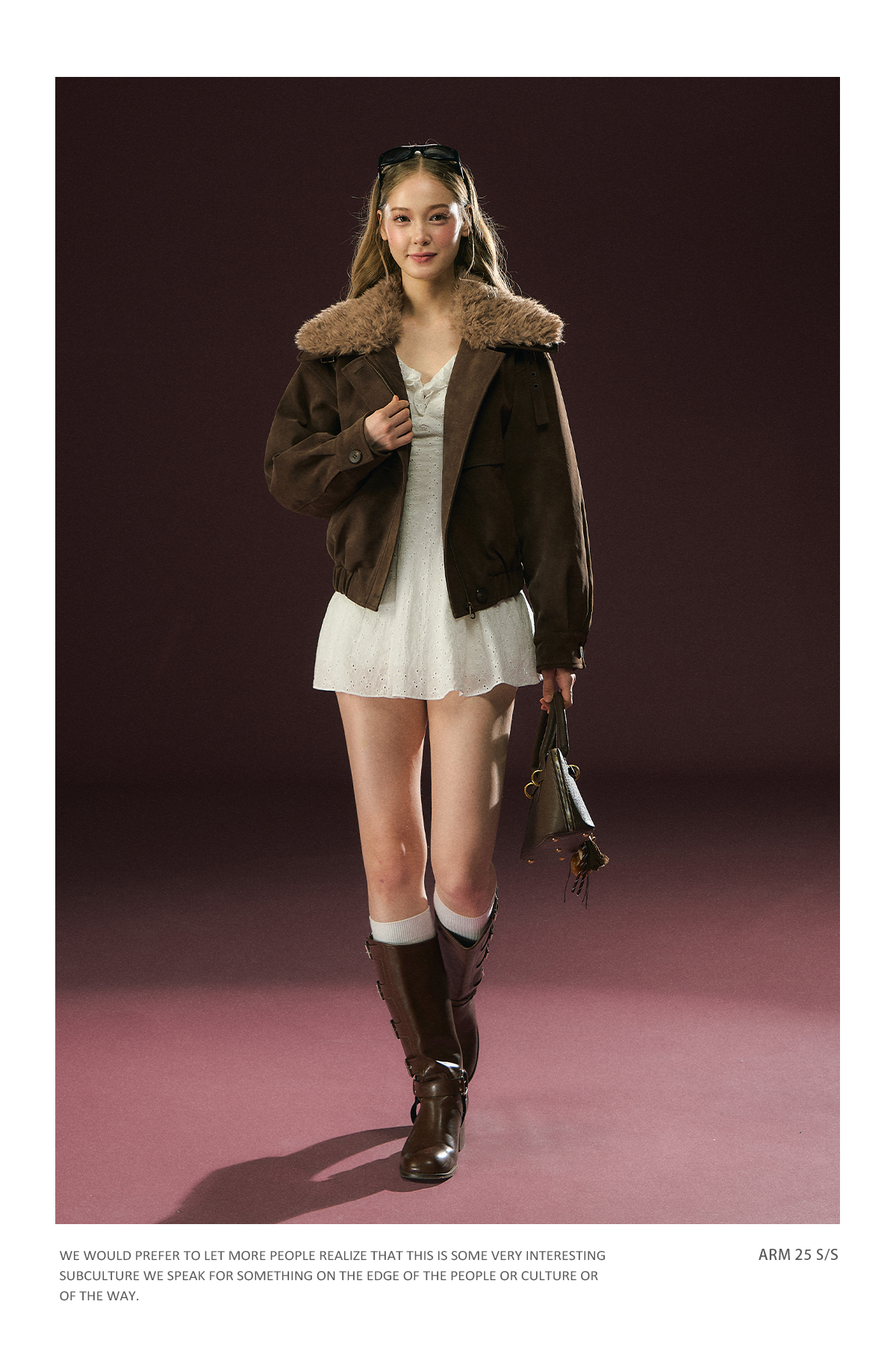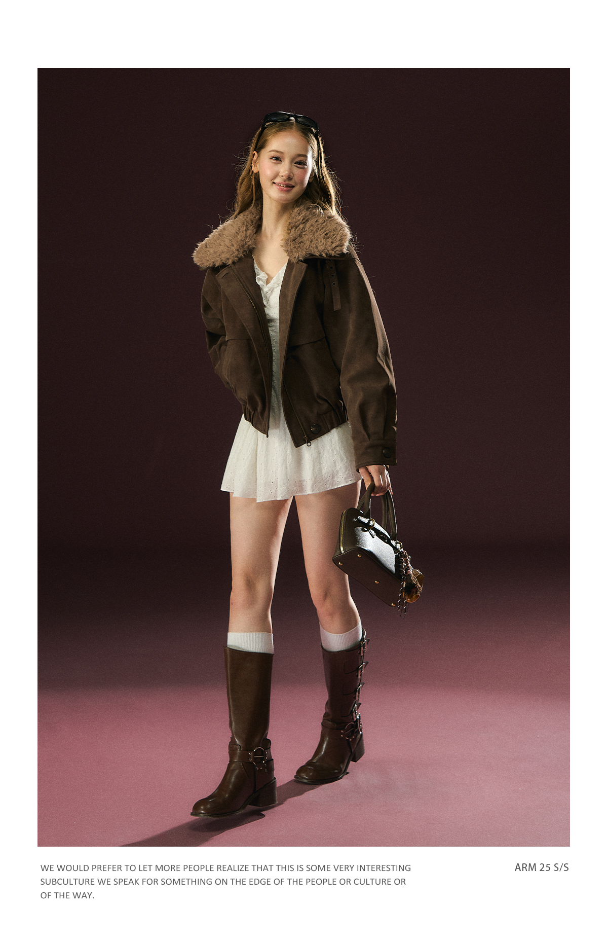 Ariseism 美式复古设计感可拆卸毛领夹棉棉服女秋冬新款外套