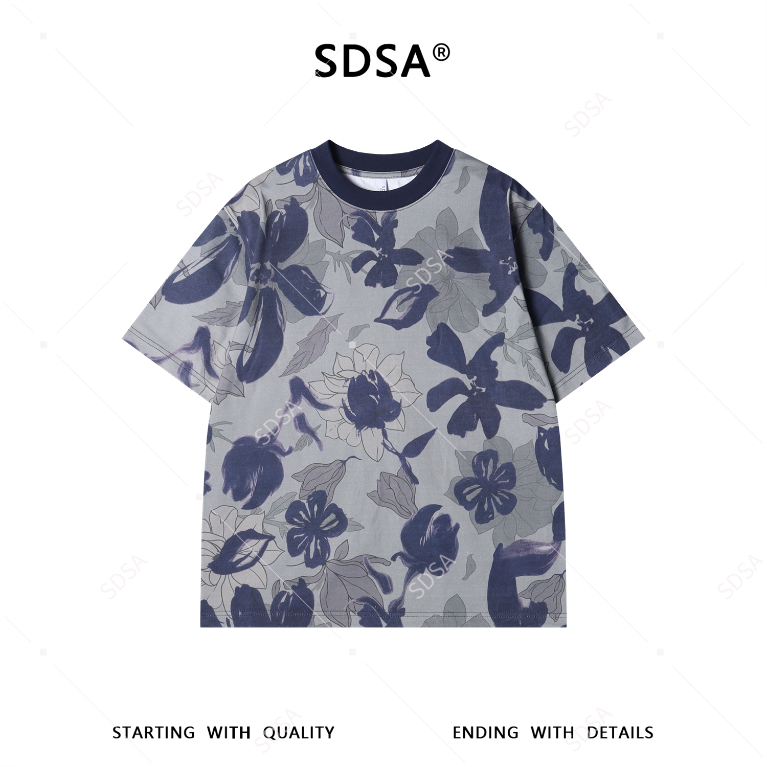 26T177SDSA男装2026新款高贵轻奢时尚花卉满印设计圆领短袖T恤百搭宽松