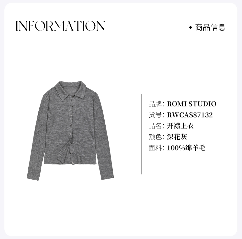 ROMI STUDIO“格雷高支”100%绵羊毛轻薄挺括开襟毛织 RWCAS87132