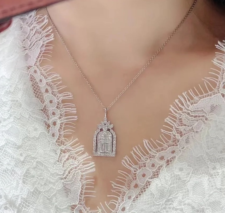 幸福之门满钻城堡浪漫告白时尚通勤锁骨链-(XK)