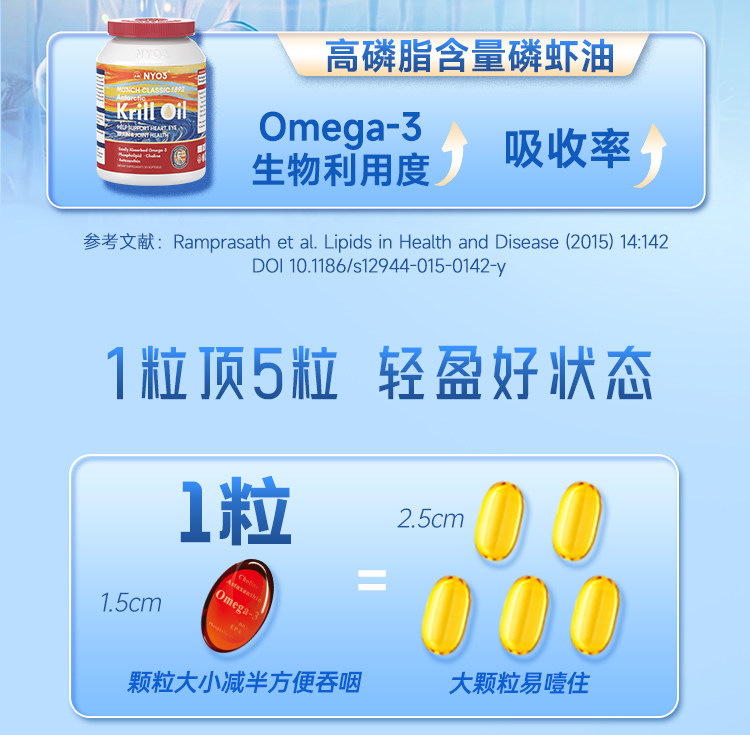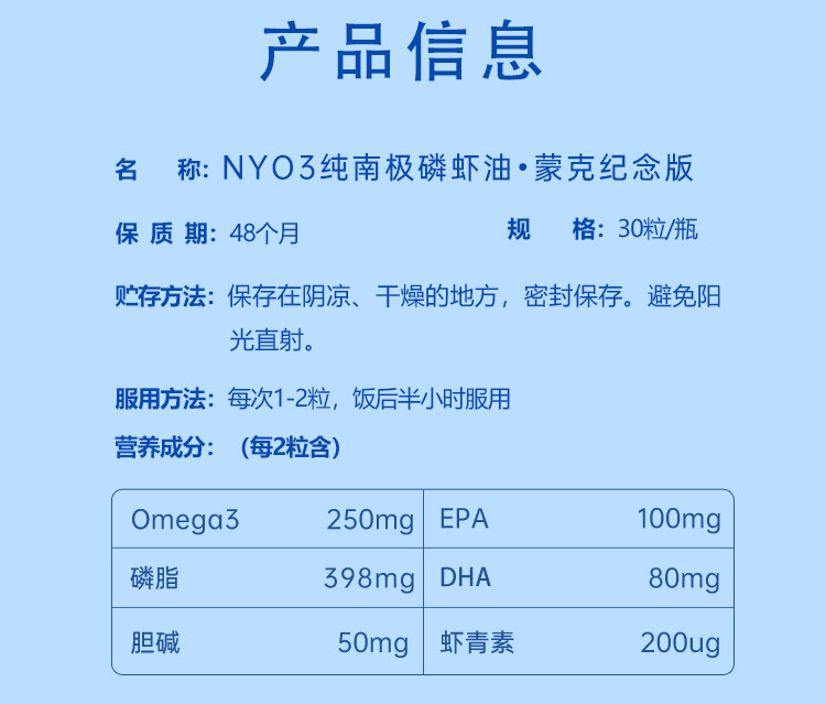 NYO3进口蒙克纯南极磷虾油30粒磷脂型Omega3呵护心脑鱼油升级