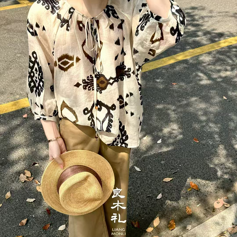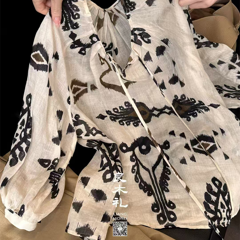 良木礼高级感气质氛围印花休闲衬衫(0751)