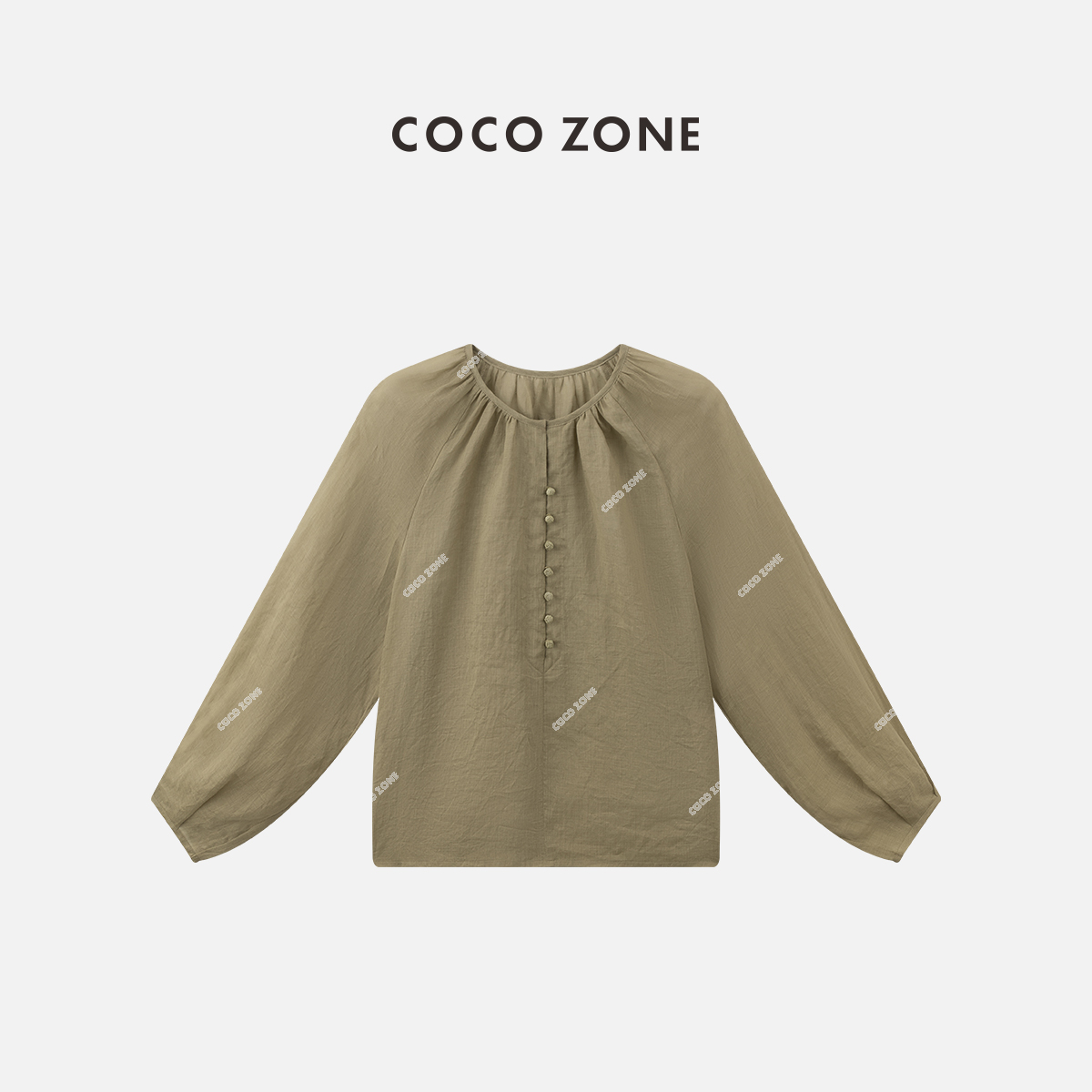 COCO ZONE"禅意美学“夏季时尚长袖薄款上衣V领显瘦简约纯色衬衫CC2B0903
