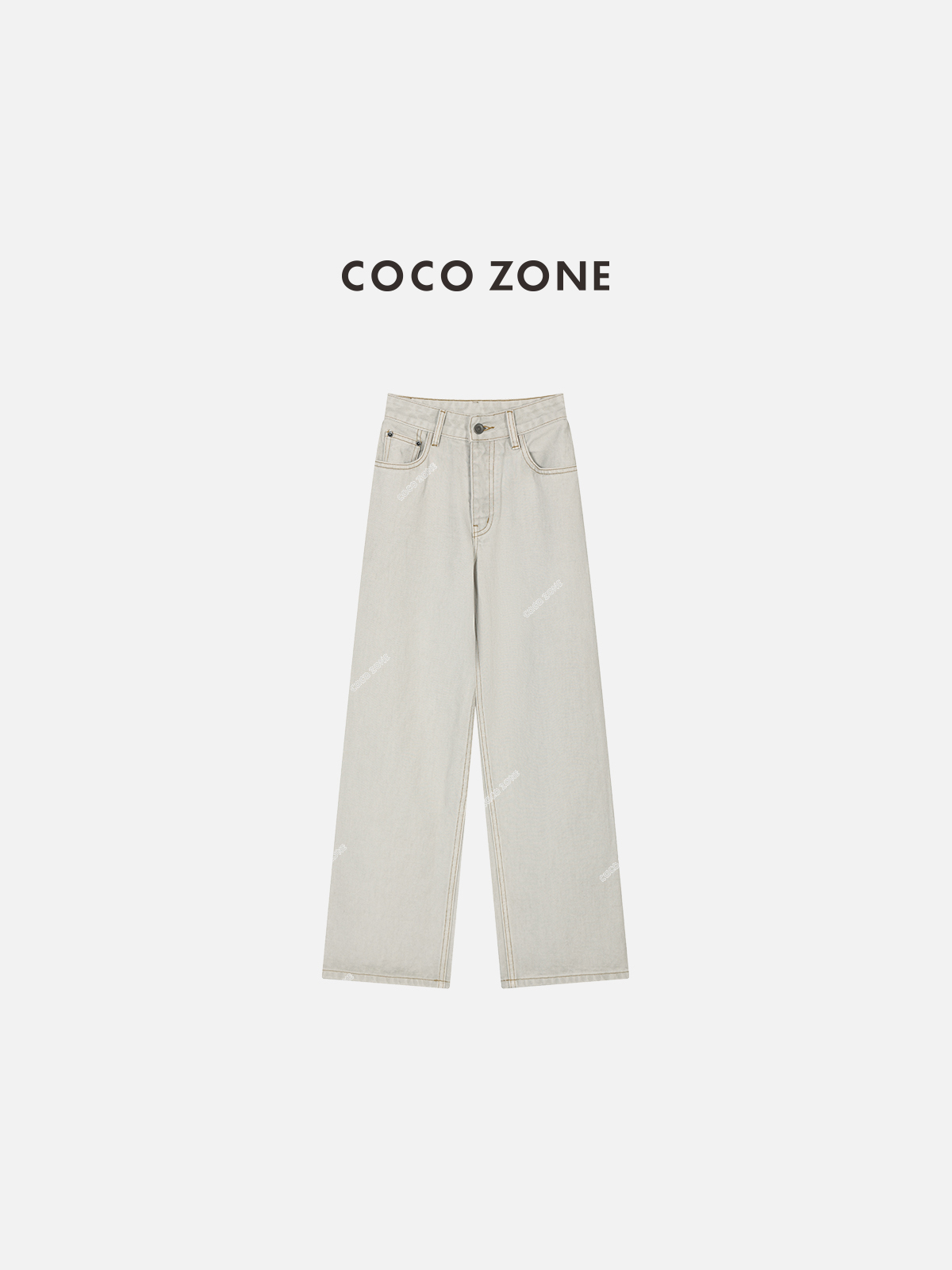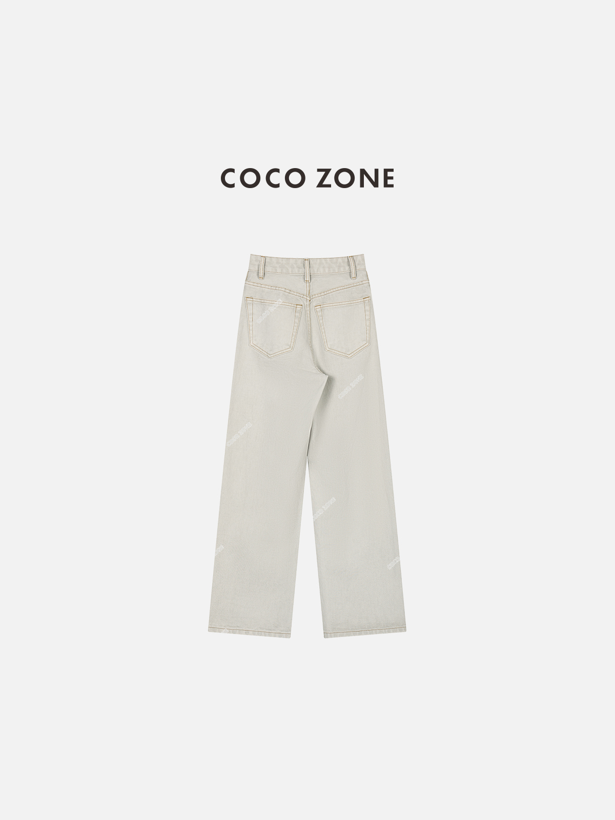 COCO ZONE100%棉复古灰色高腰牛仔裤直筒裤子 23C19180
