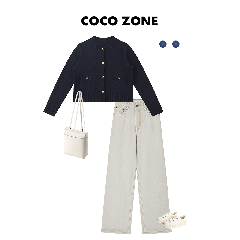 COCO ZONE 刘 一一”白雪公主“小立领编织织带软糯外套CD2A2946