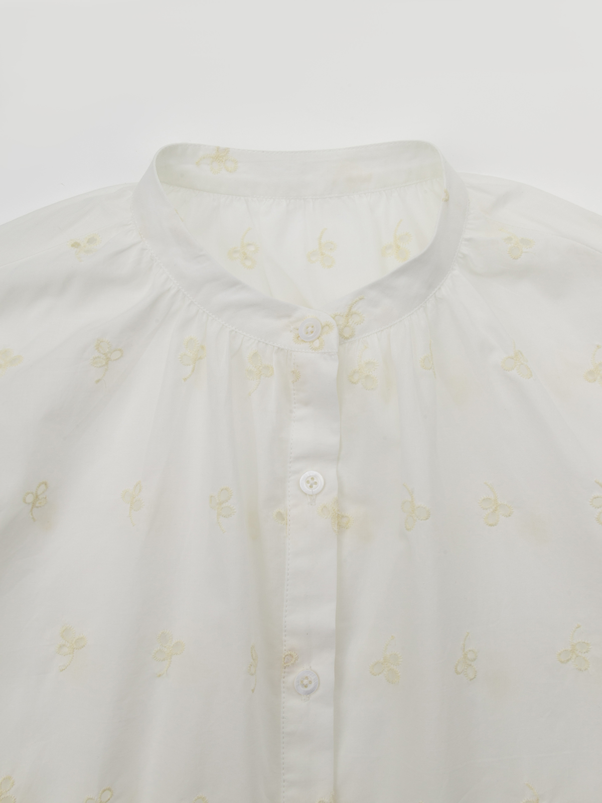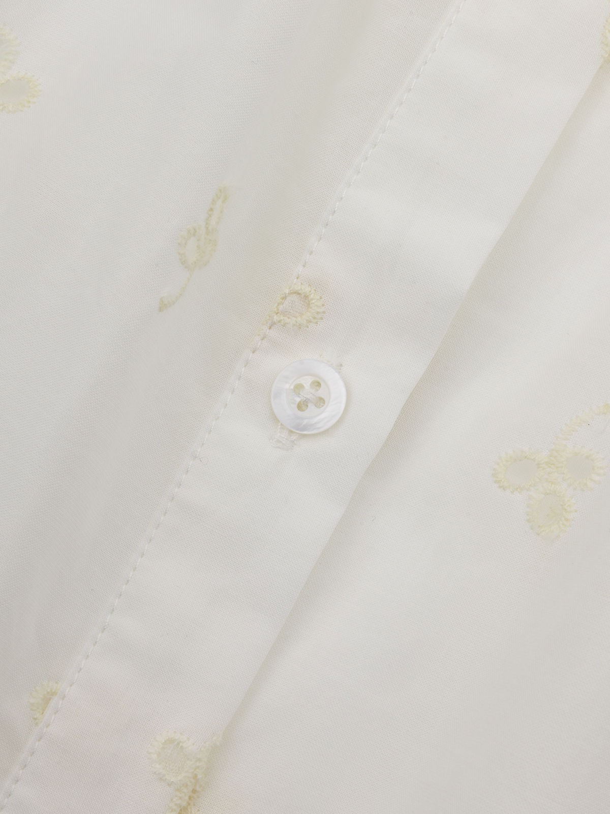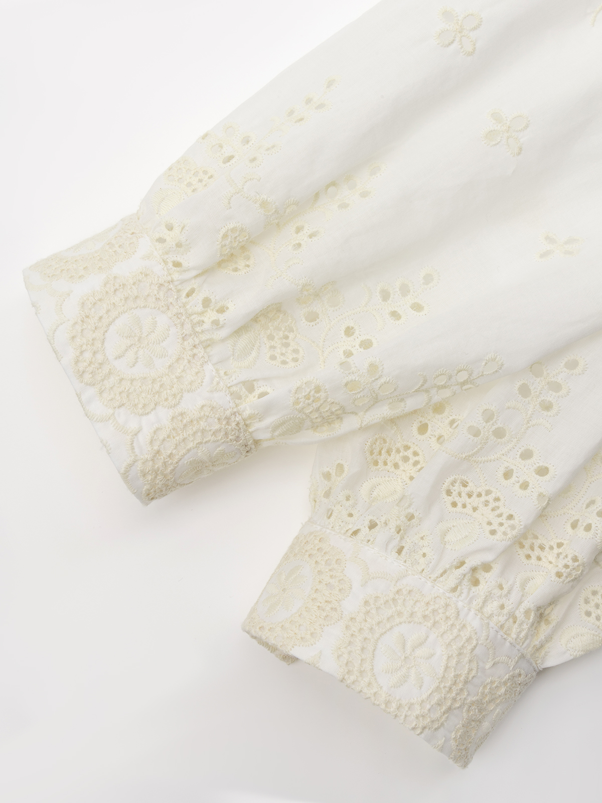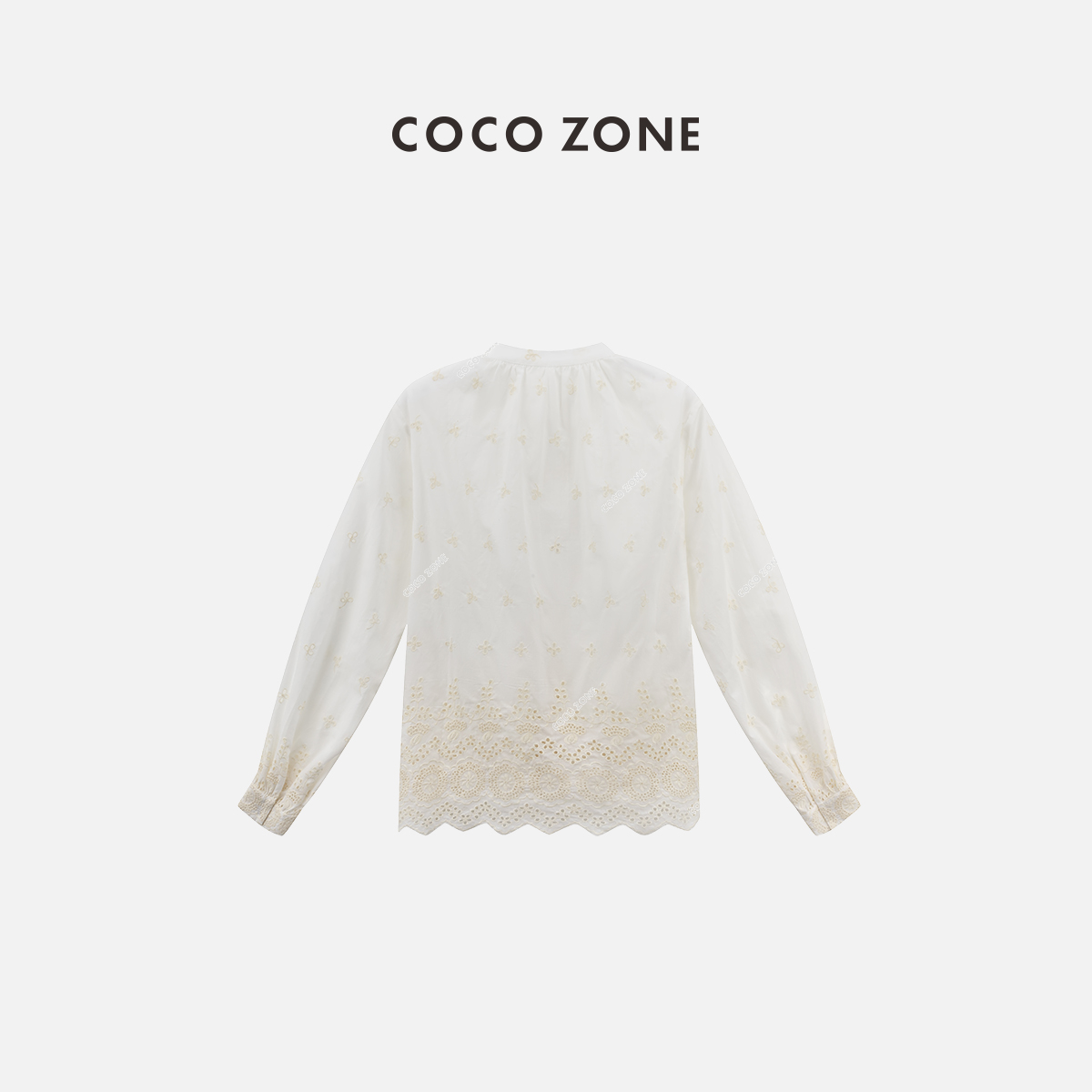 COCO ZONE“吉米”100棉夏季镂空立领衬衫简约单排扣长袖上衣CC1B1099