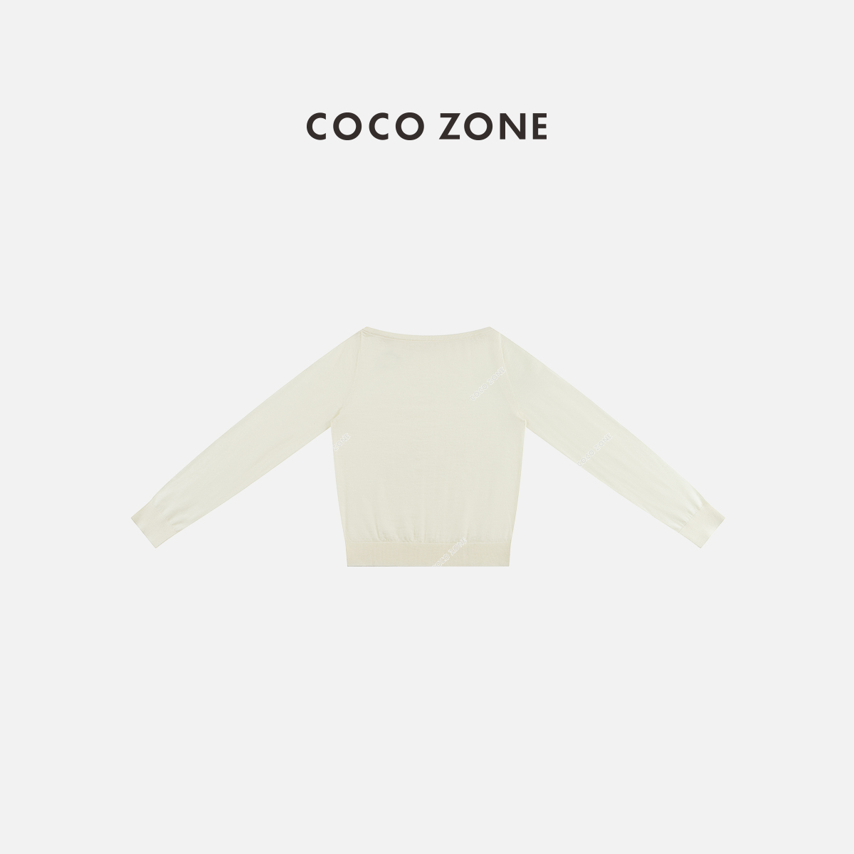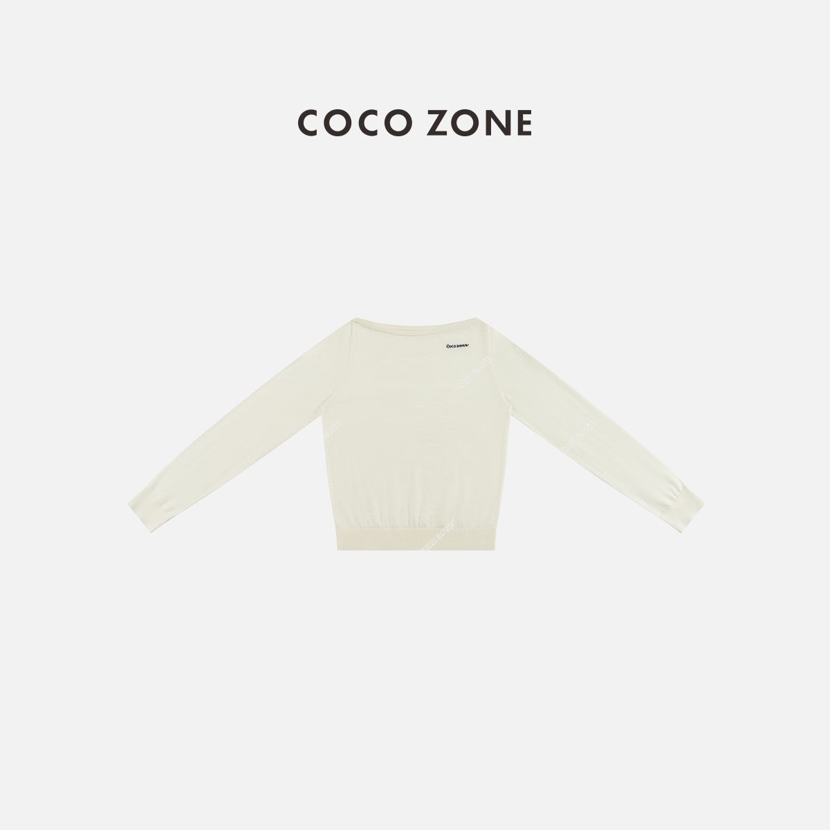 COCO ZONE 100绵羊毛春季一字肩字母长袖针织衫CD1A0031