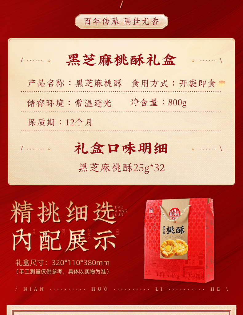 稻香村黑芝麻桃酥礼盒800g