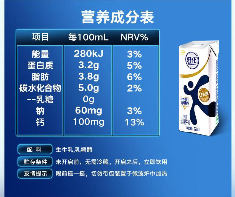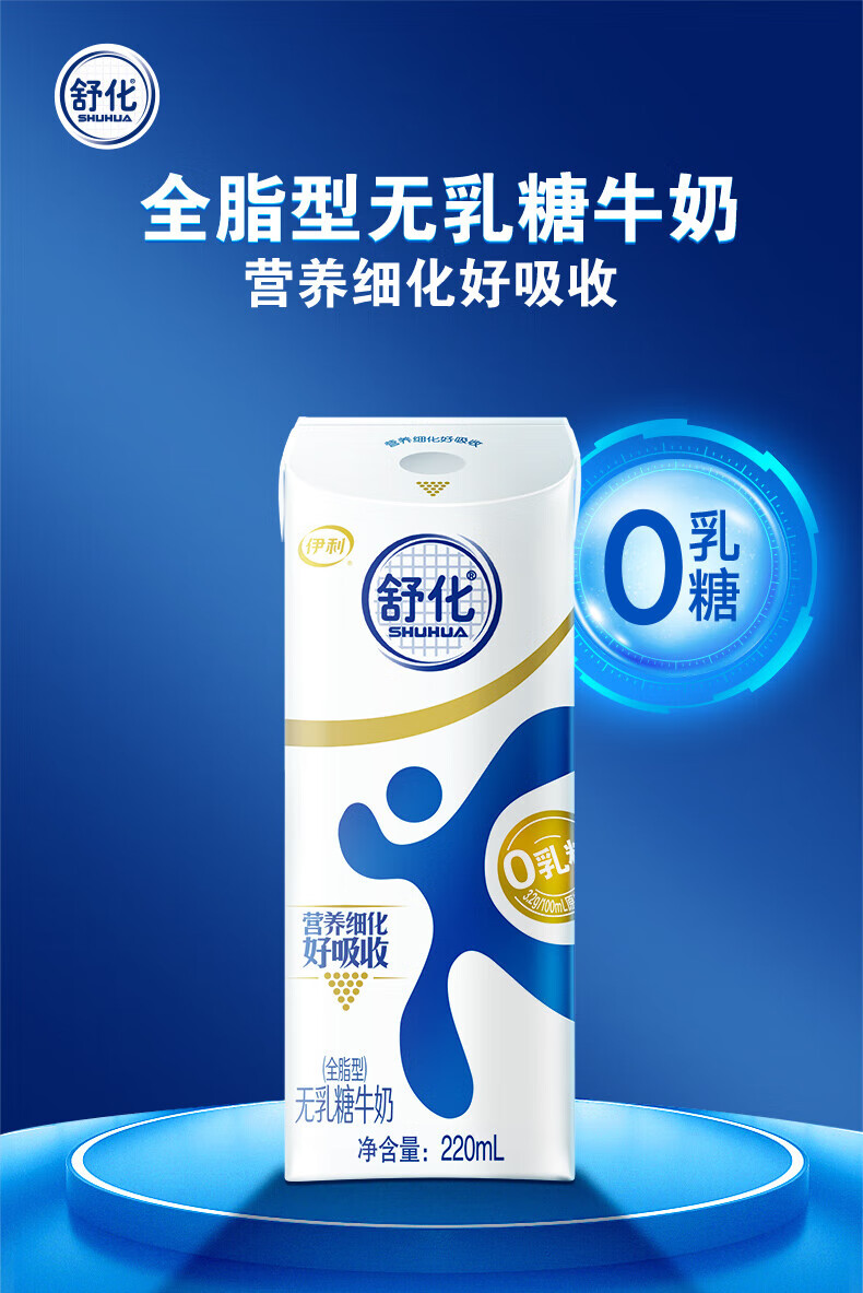 伊利舒化全脂型无乳糖牛奶220ml*12盒
