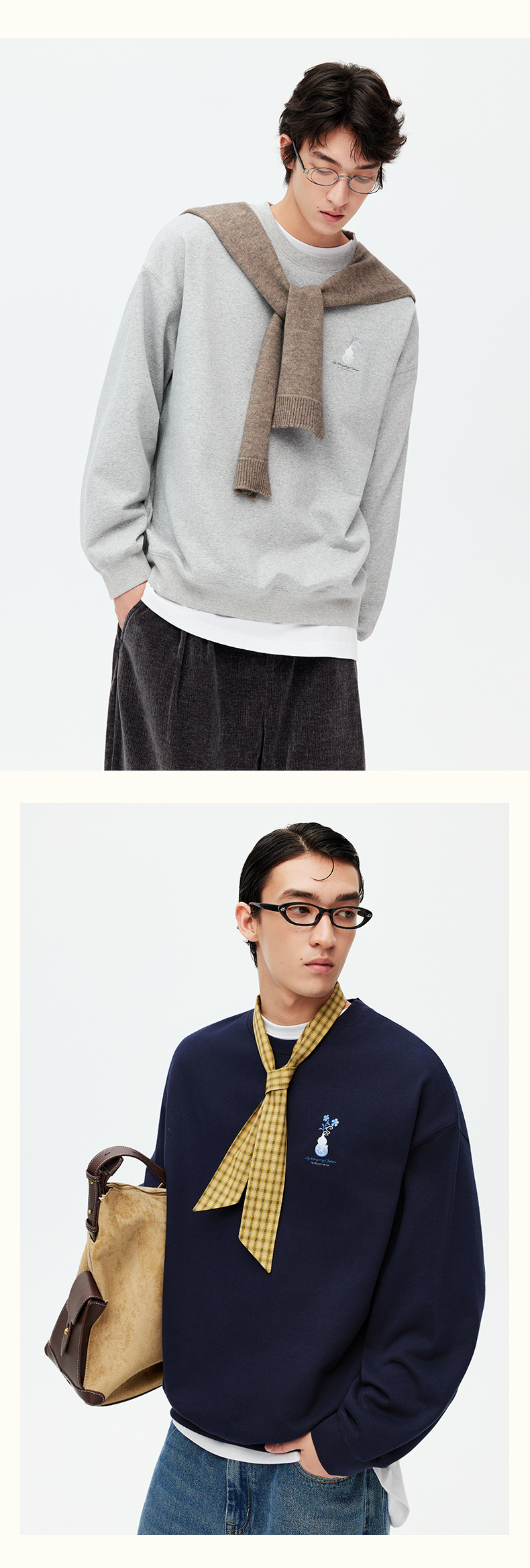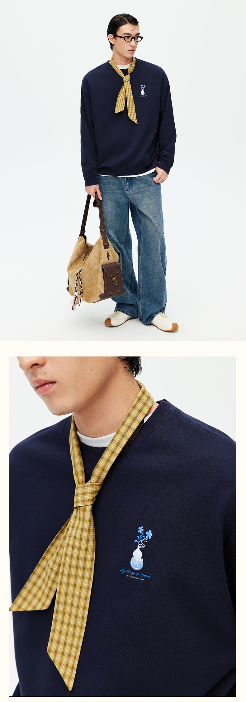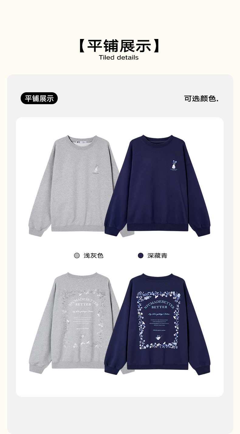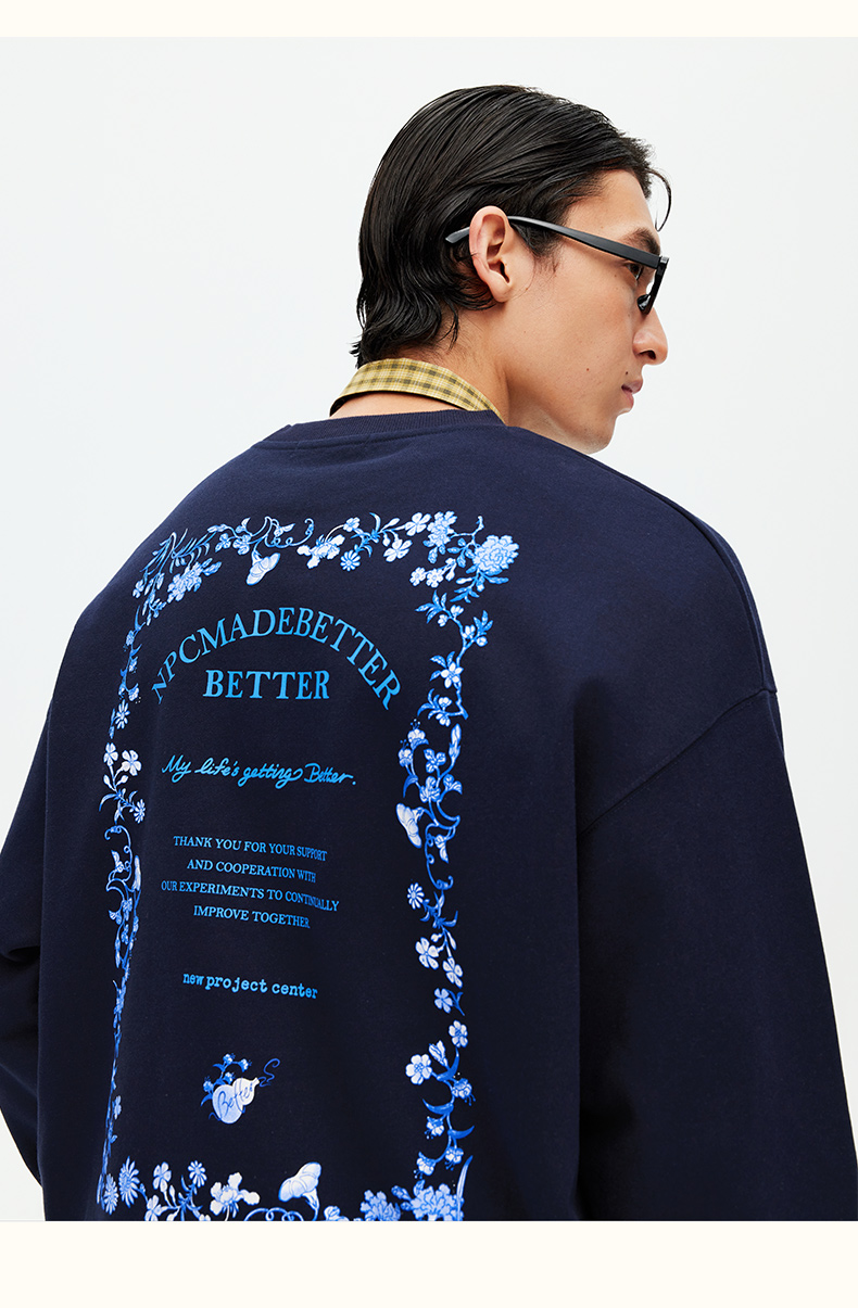 NPC潮牌【青花鹤福】系列果冻胶印花圆领卫衣情侣宽松秋NP59ST01