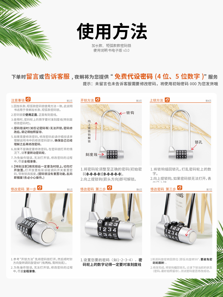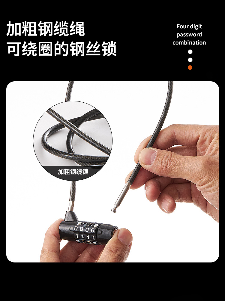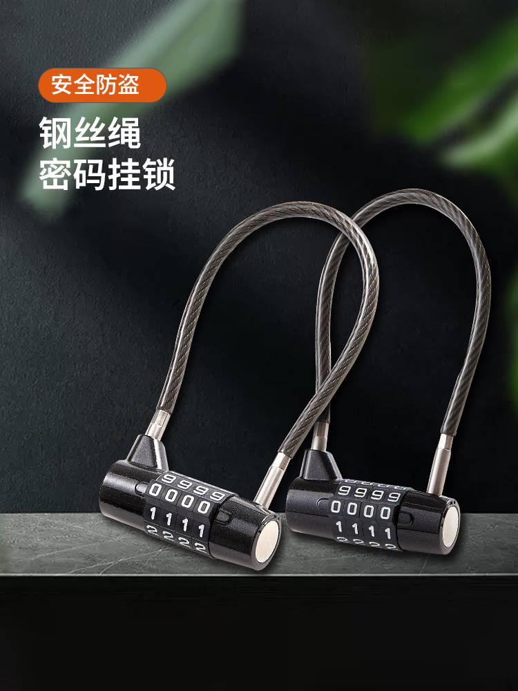 钢丝密码锁多功能用途锁庭院桌椅除草机工具院门冰箱把手门密码锁