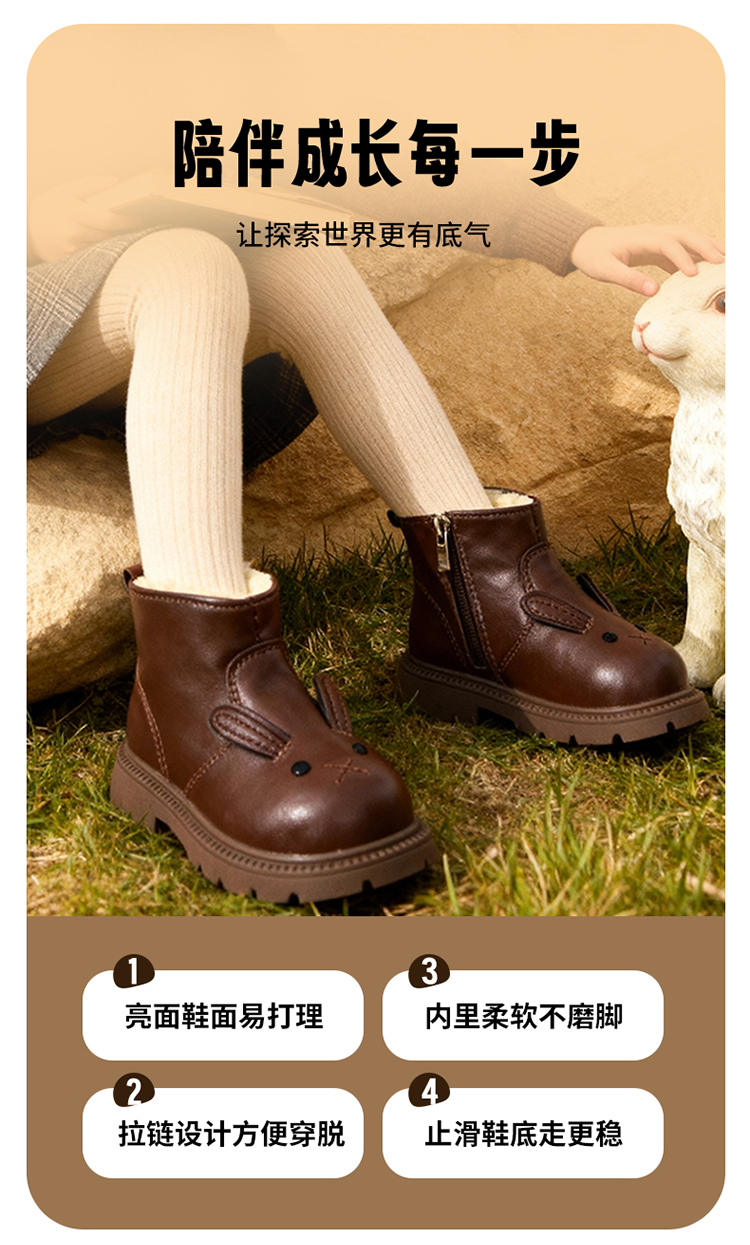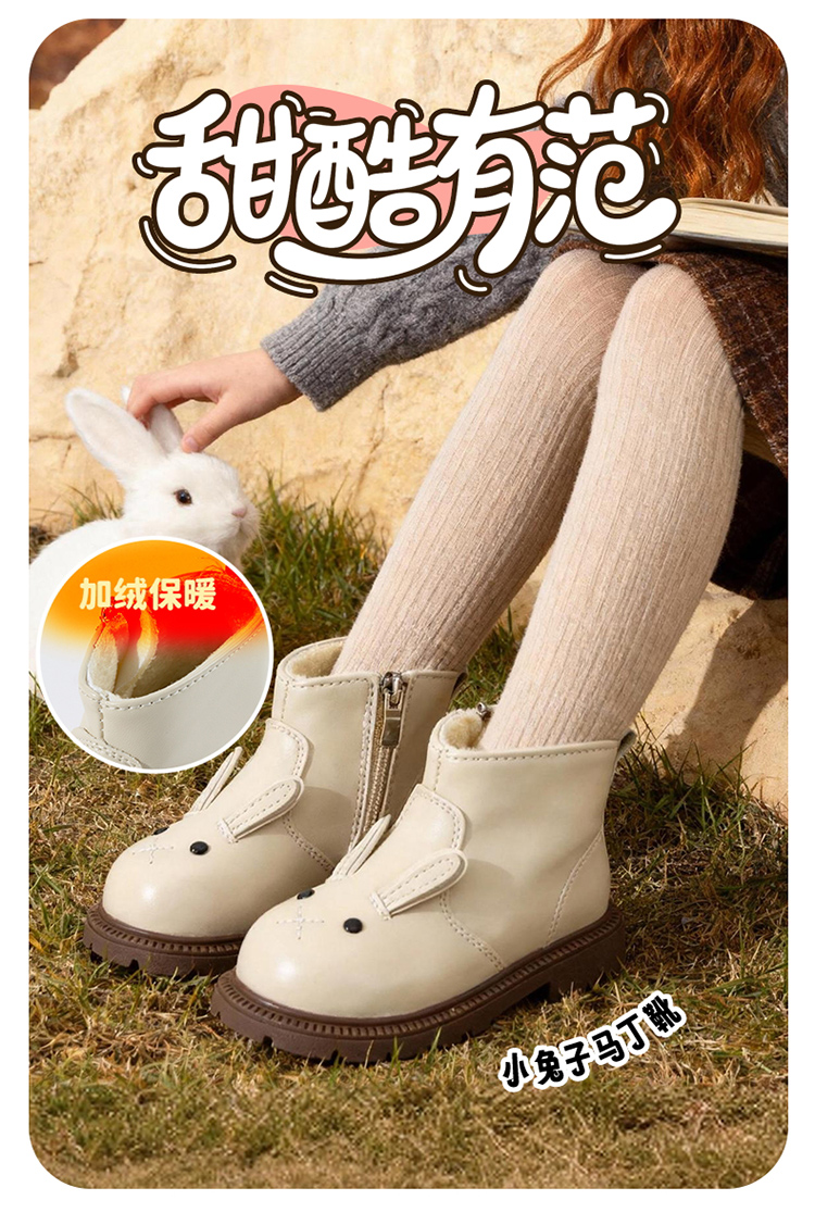 贝贝怡加绒稳步鞋女童宝宝鞋马丁靴ZB4EX025