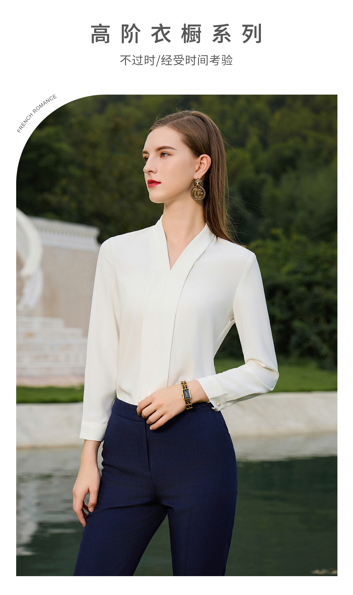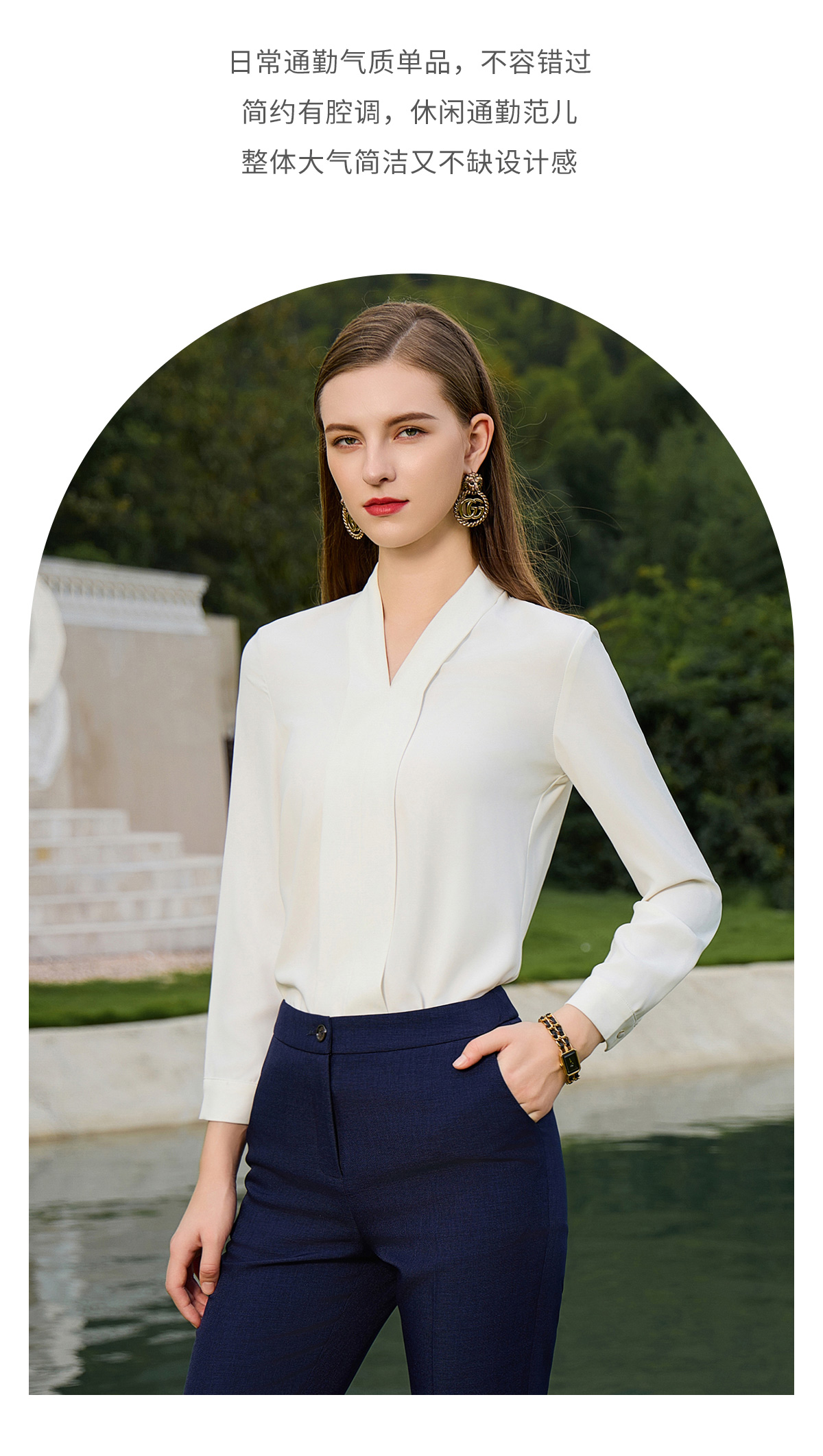 AD高端白色衬衫女秋季2023年新款时尚洋气修身高级感雪纺长袖衬衣