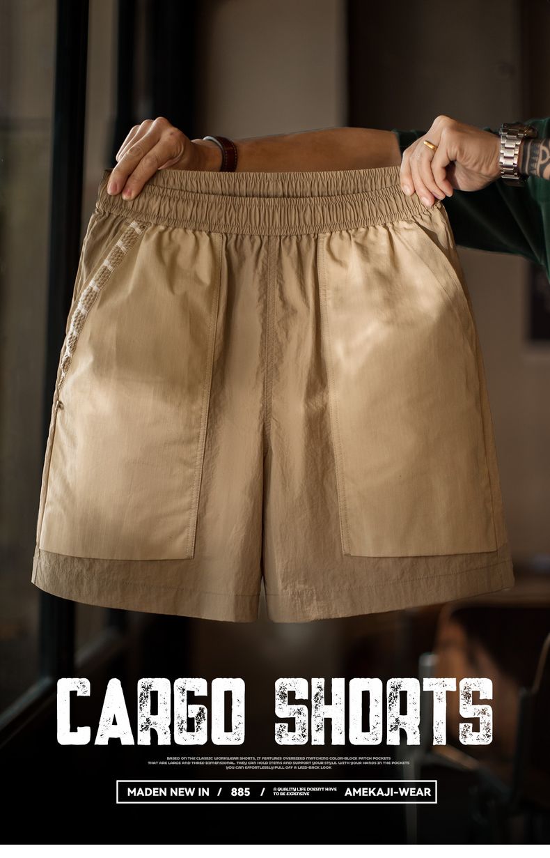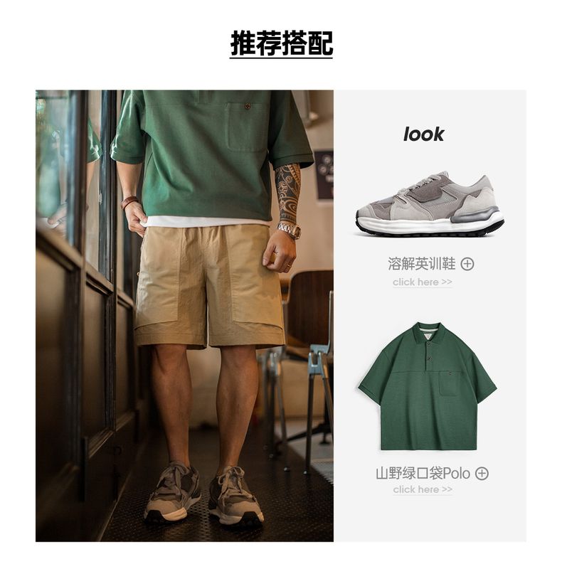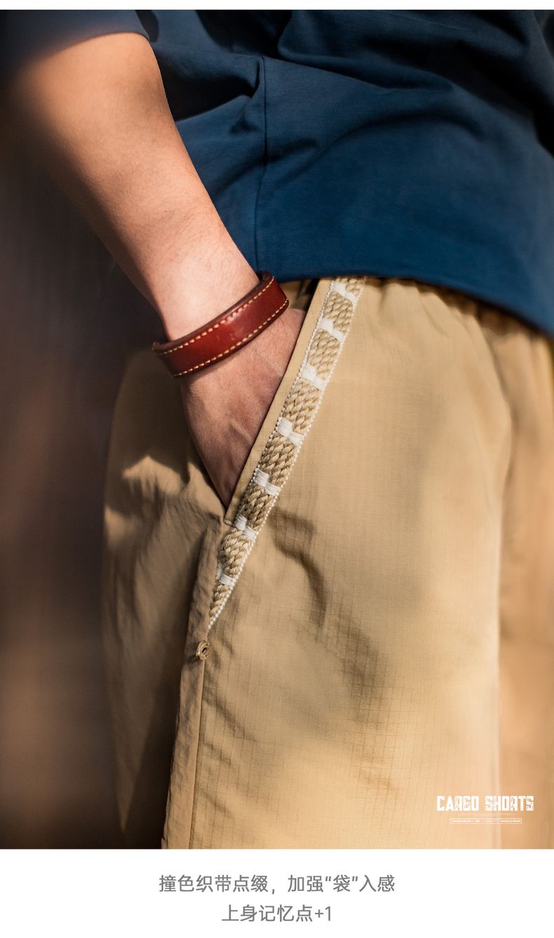 工装优选山系速干卡其色短裤大口袋梭织直筒薄款沙滩五分裤男夏季