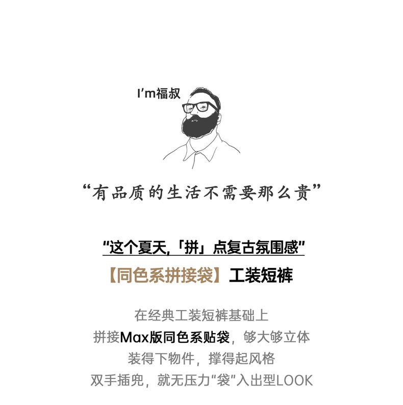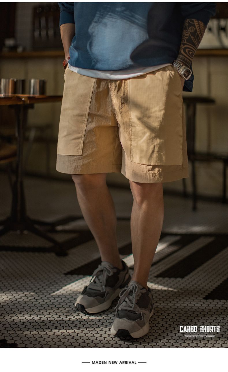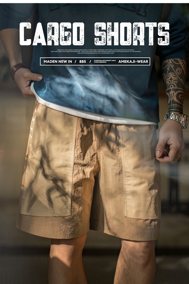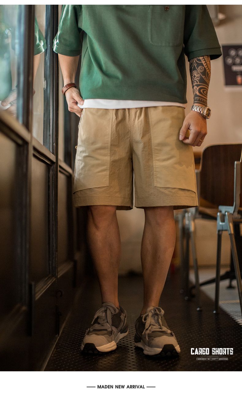 工装优选山系速干卡其色短裤大口袋梭织直筒薄款沙滩五分裤男夏季