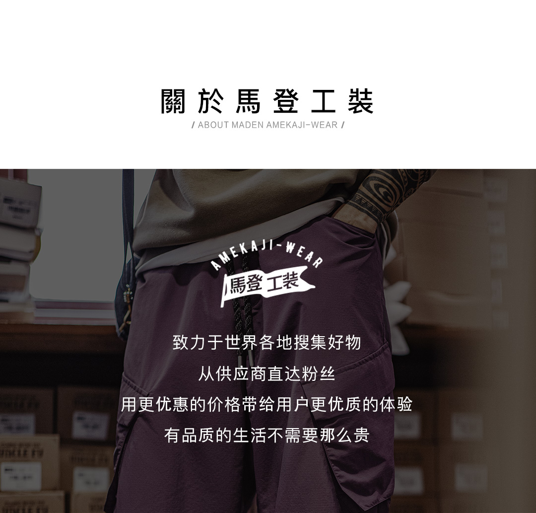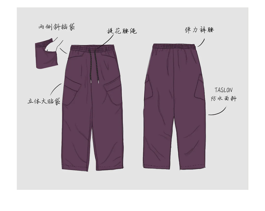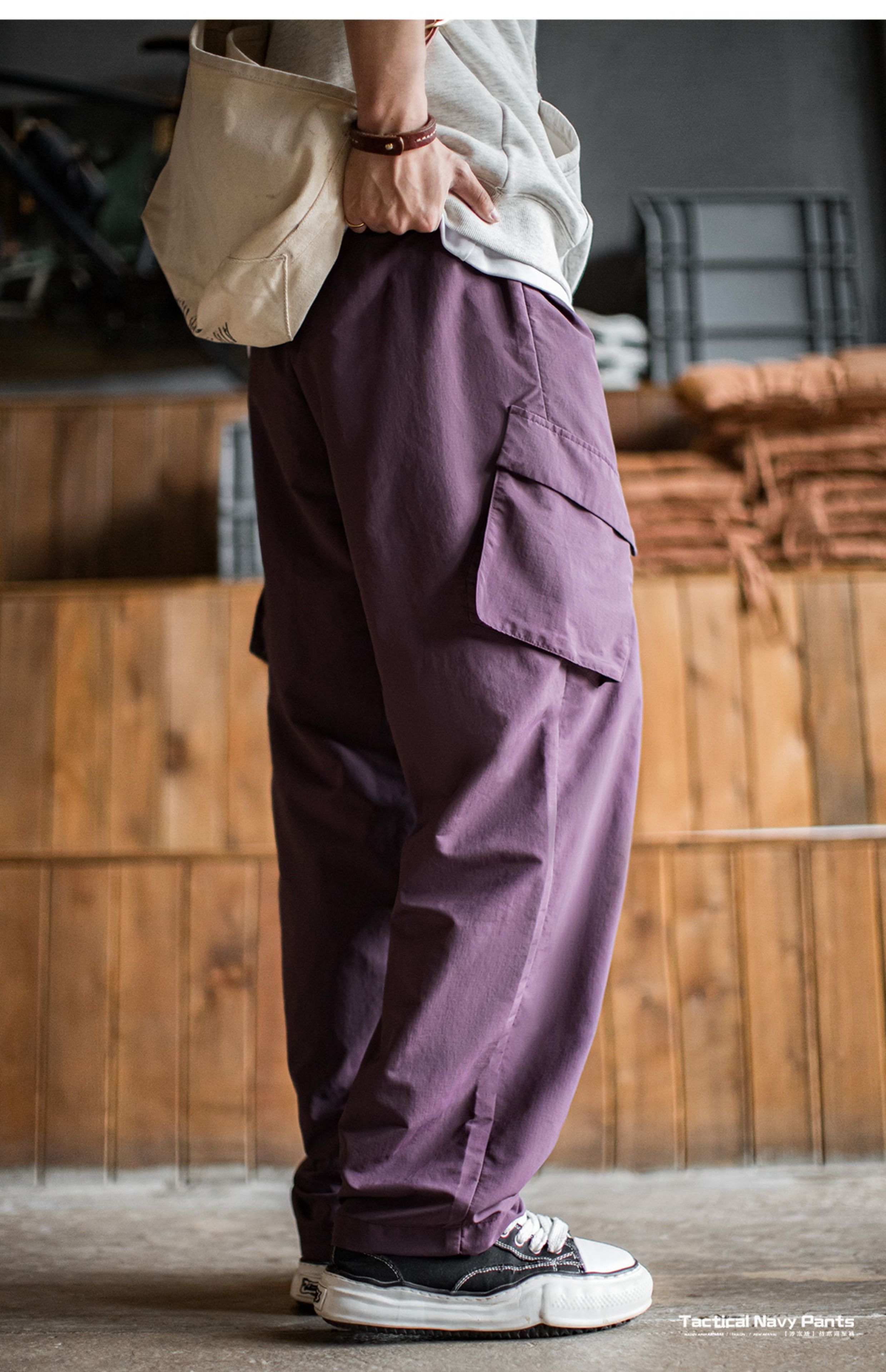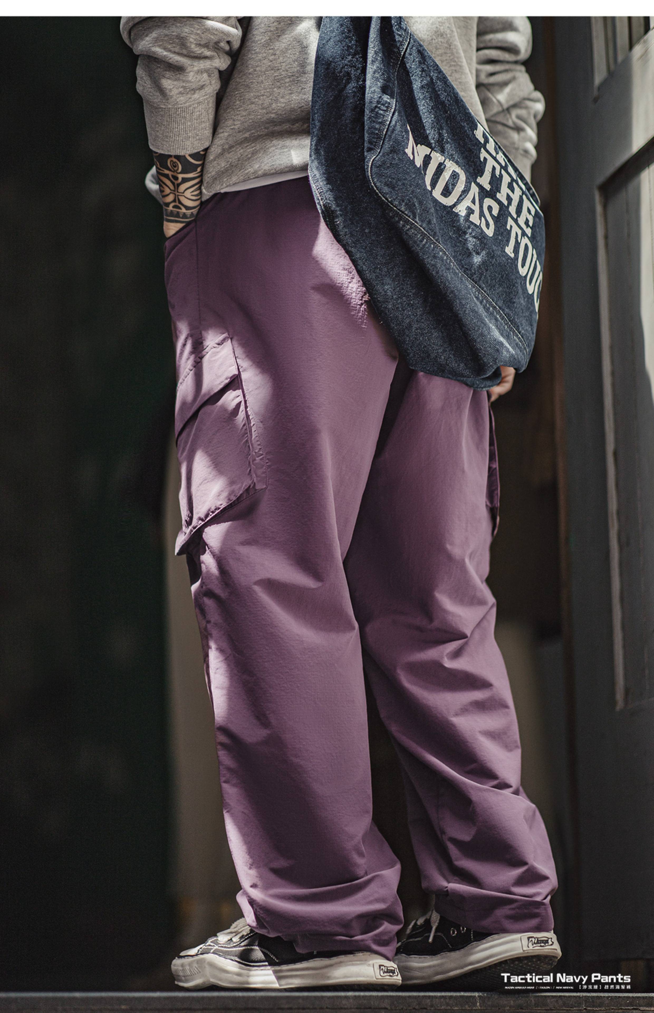 马登工装轻美式山系速干休闲裤大口袋透气薄款紫色长裤子男夏秋