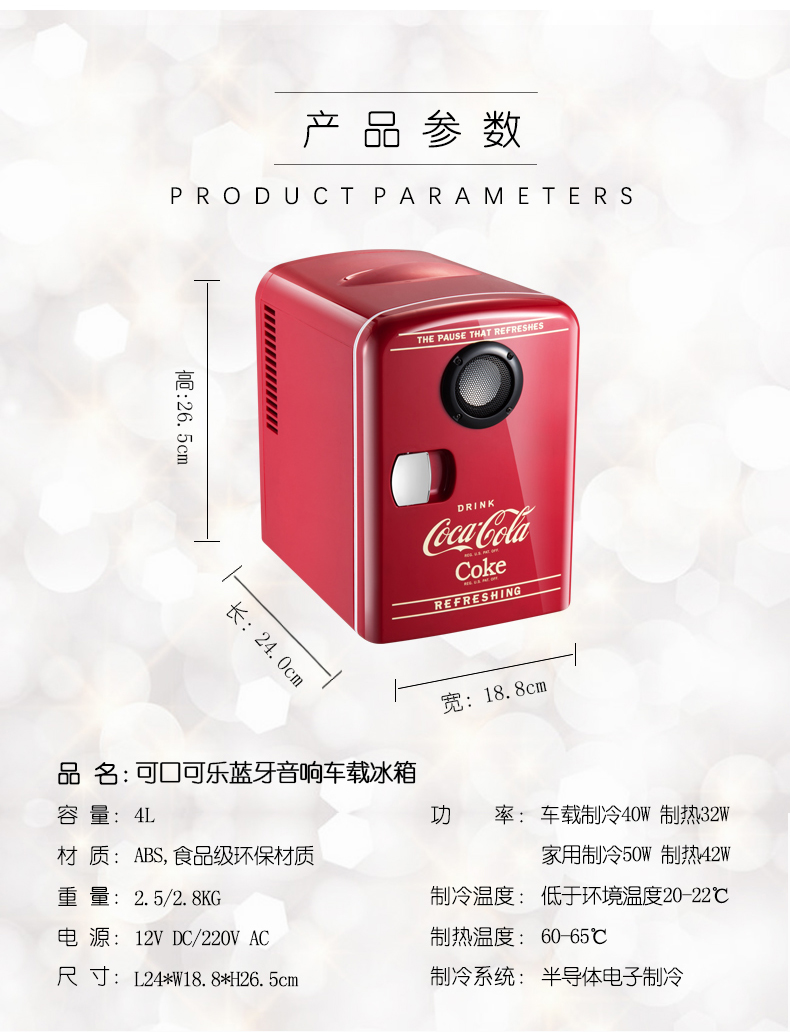 【可口可乐授权 会唱歌的小冰箱】可口可乐蓝牙音响迷你小冰箱 冷热双能 车载冰箱办公室/宿舍用/露营野餐/美妆冷藏箱