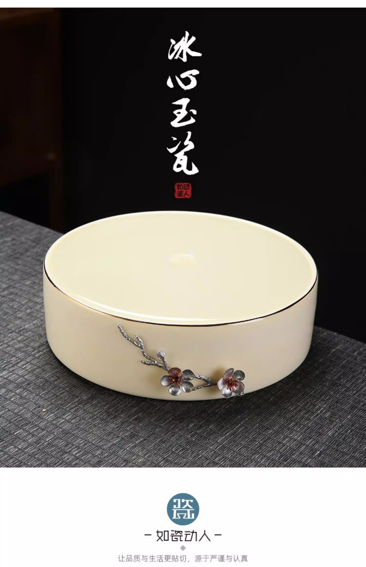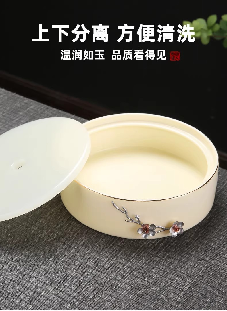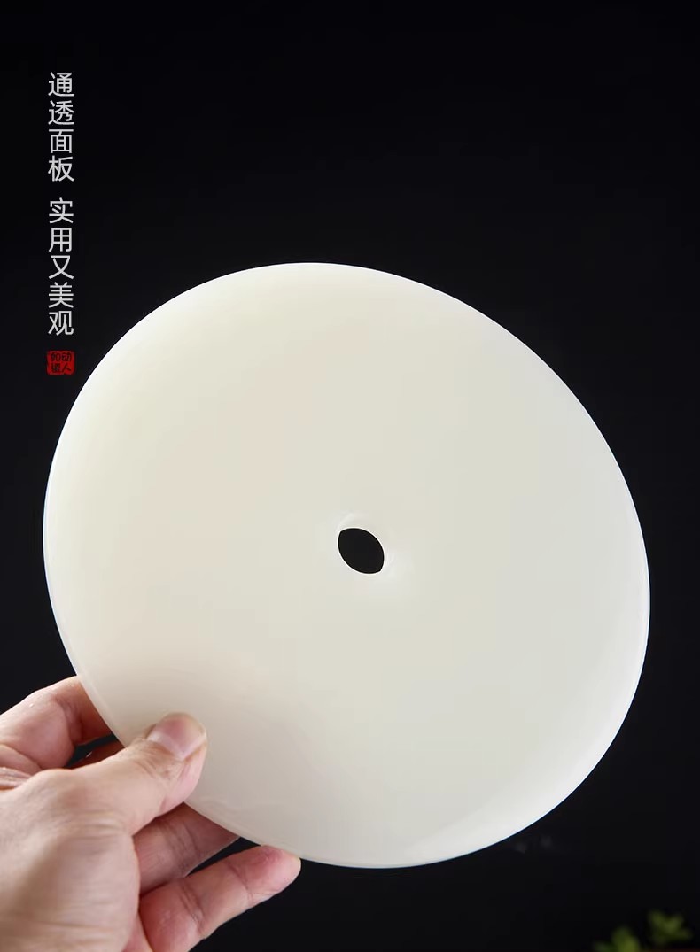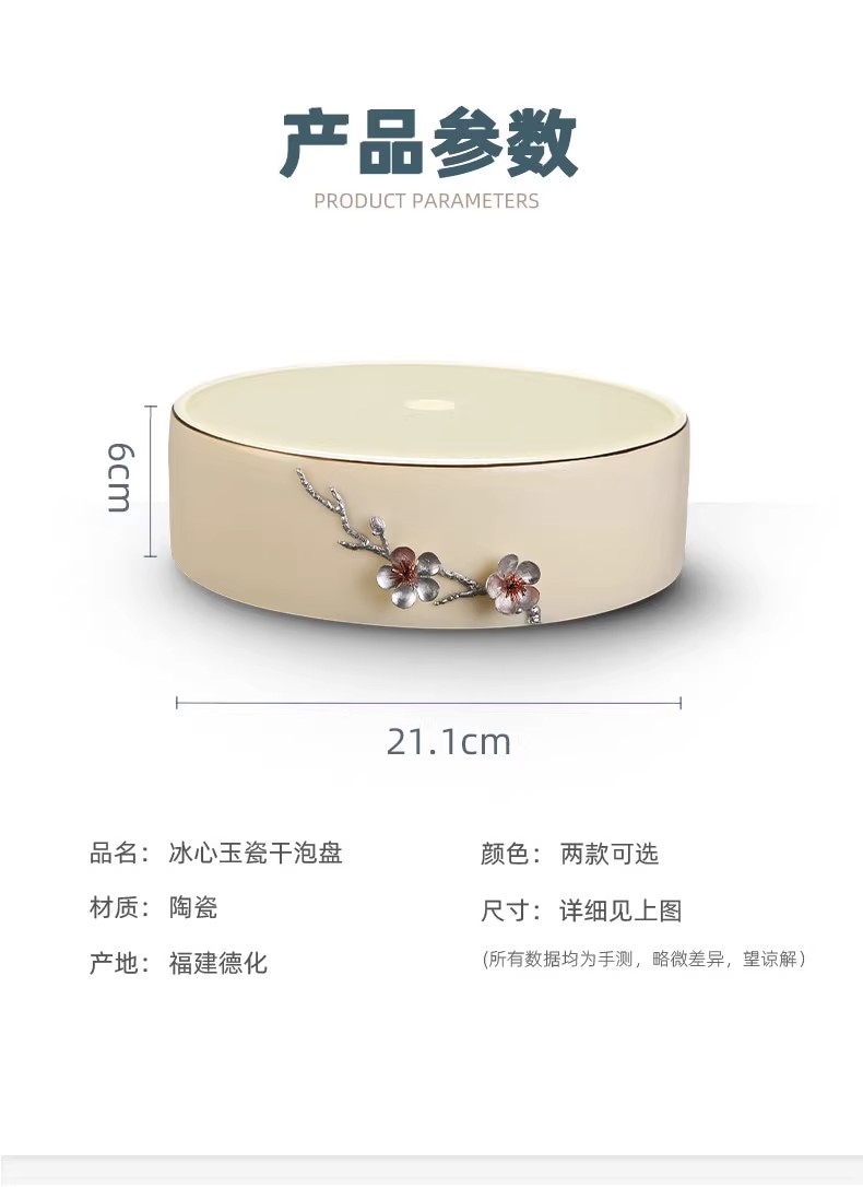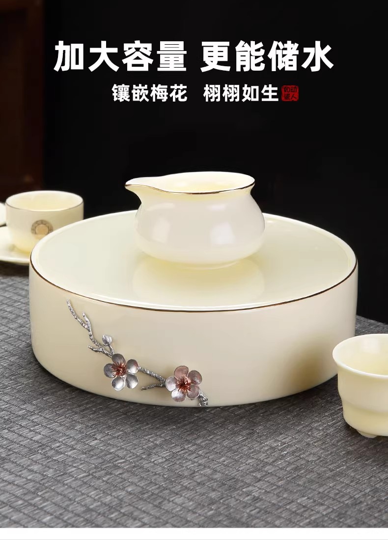 尚置丨羊脂玉干泡盘 家用小茶台 现代简约 托盘圆形储水式 陶瓷茶盘(不含茶具)