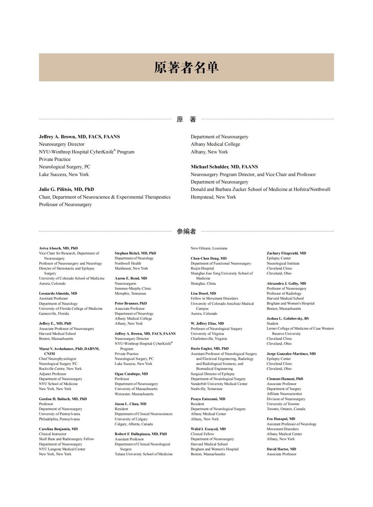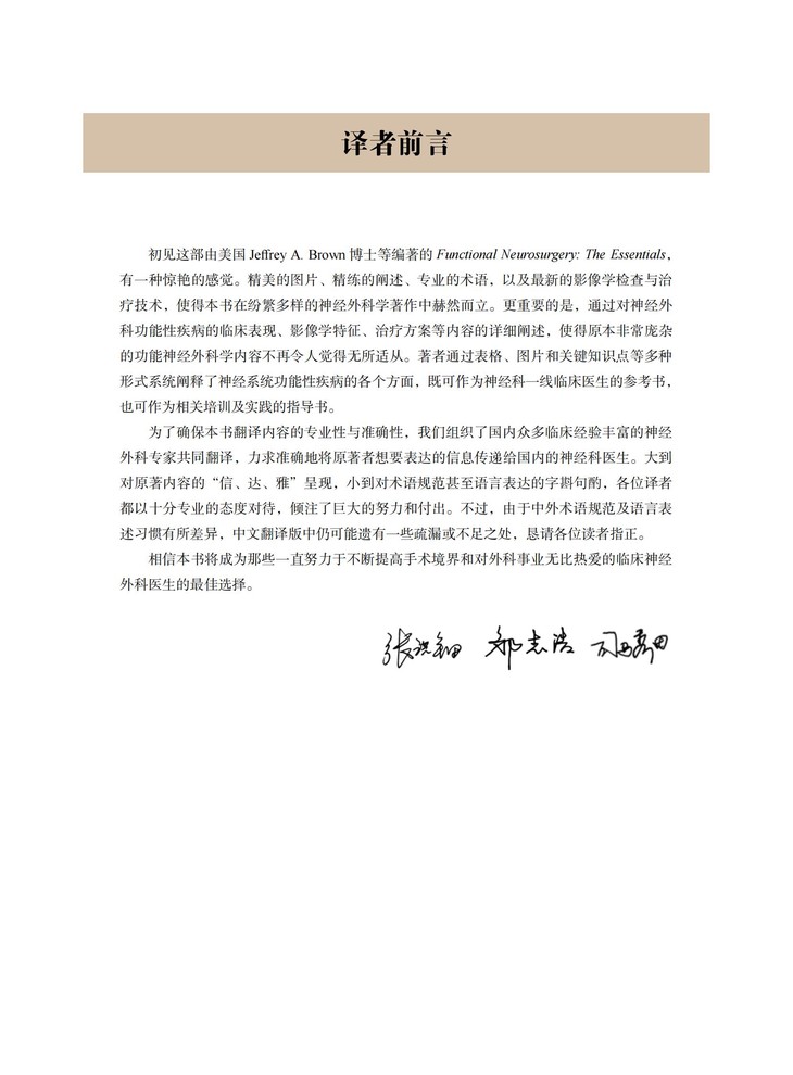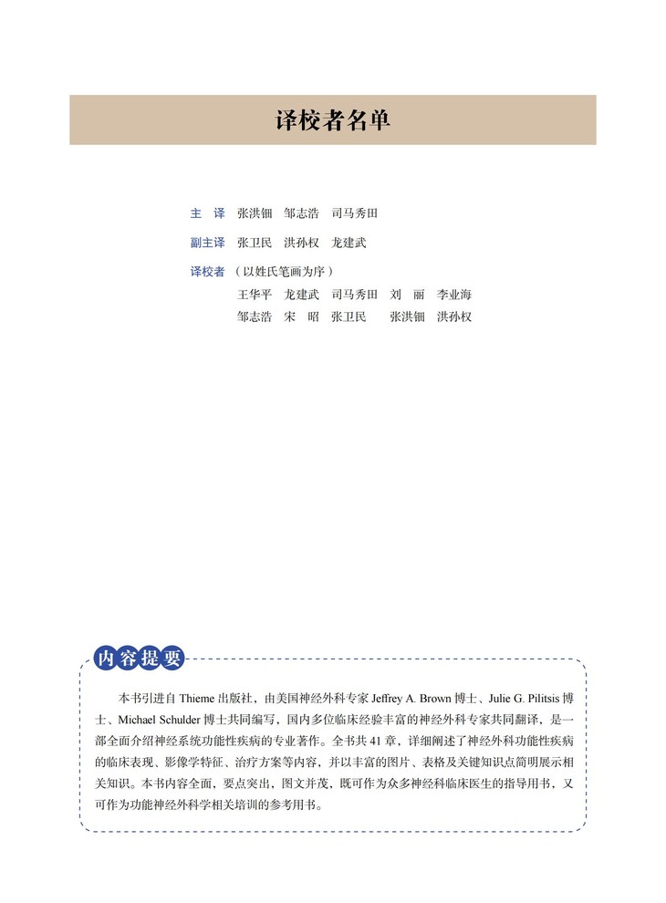本书引进自Thieme出版社,由美国的神经外科专家Jeffrey A.Brown、Julie G.Pilitsis、Michael Schulder共同编写,国内多位临床经验丰富的神经外科专家共同翻译,是一部全面介绍神经系统功能性疾病的专业著作。