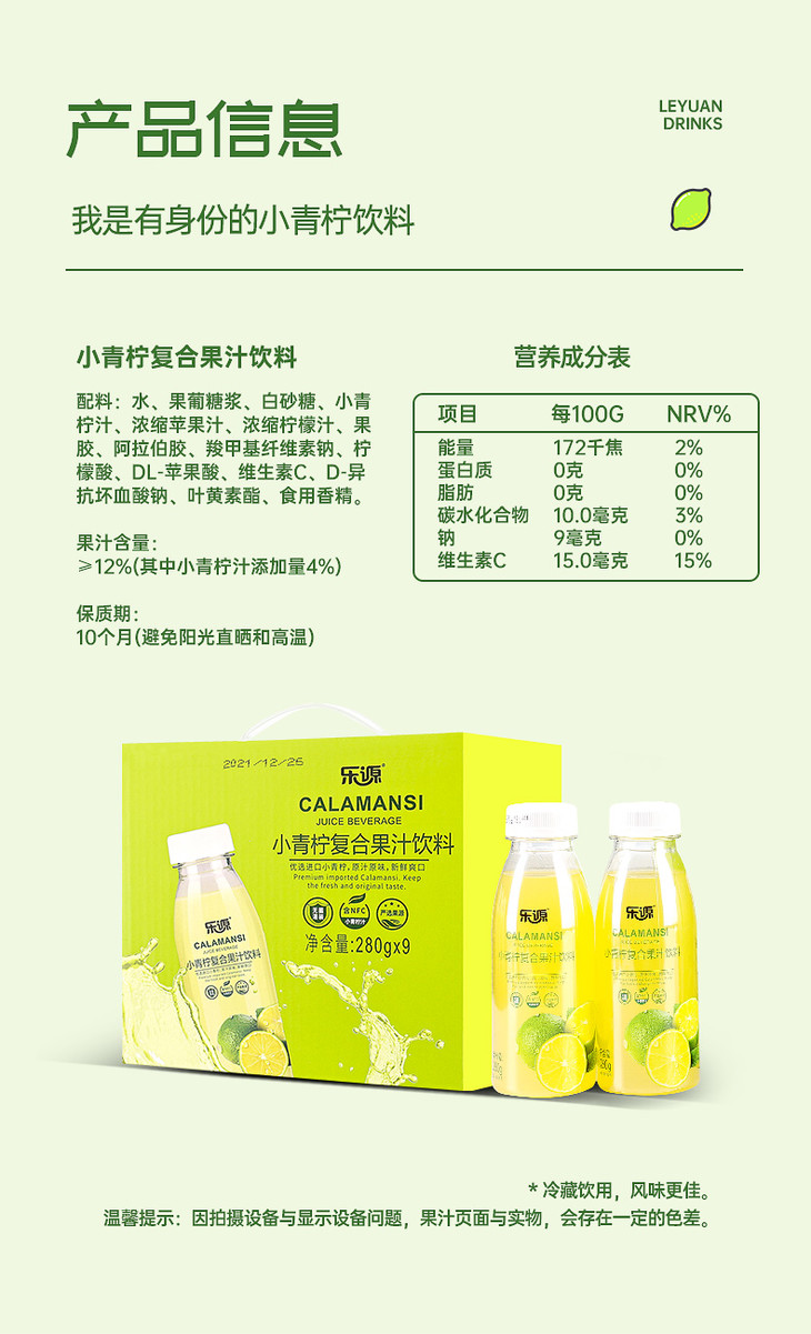 乐源小青柠复合果汁280ml