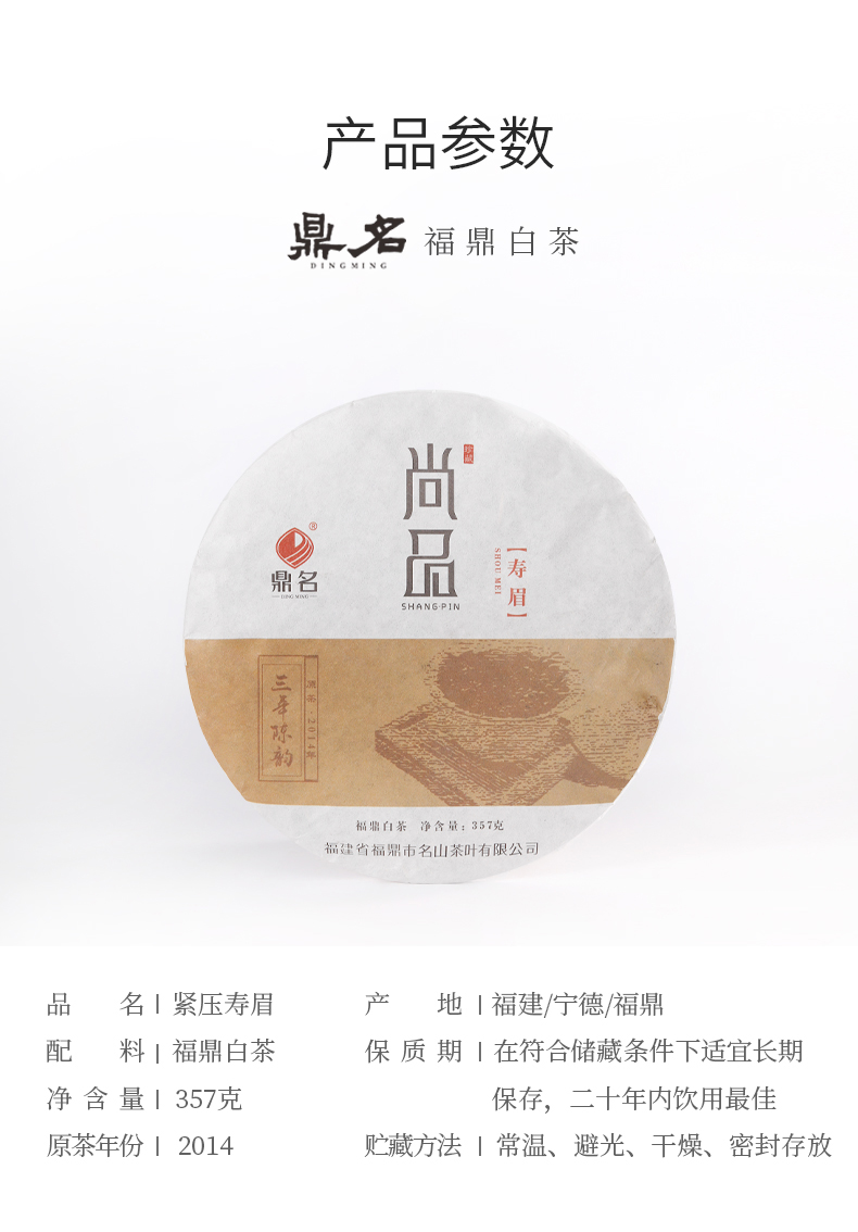 尚品 2014年寿眉 福鼎白茶 357g/饼 成箱规格:4提共28饼