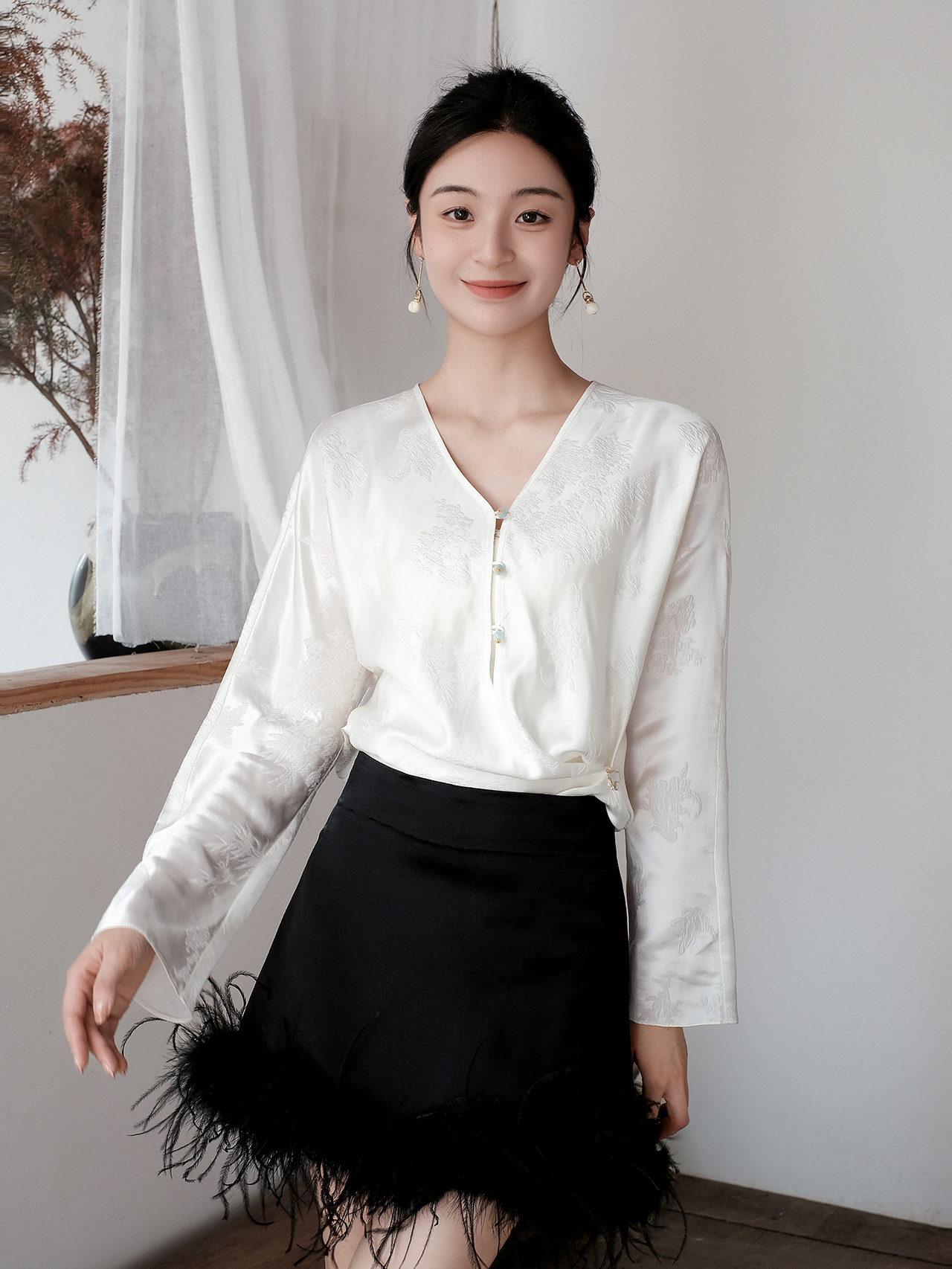 盛唐牡丹 | 时髦玉扣花香引蝶对襟女衬衫