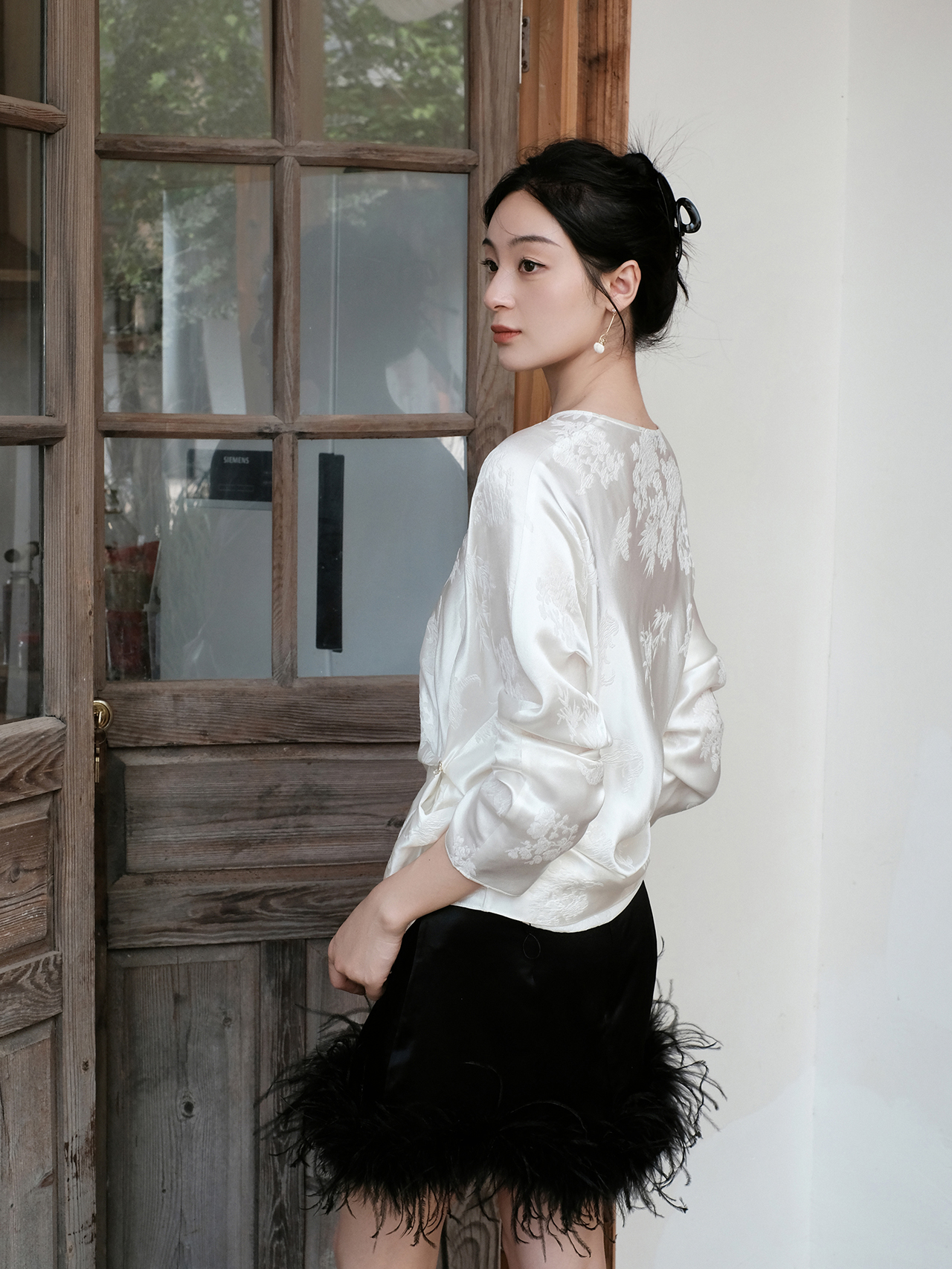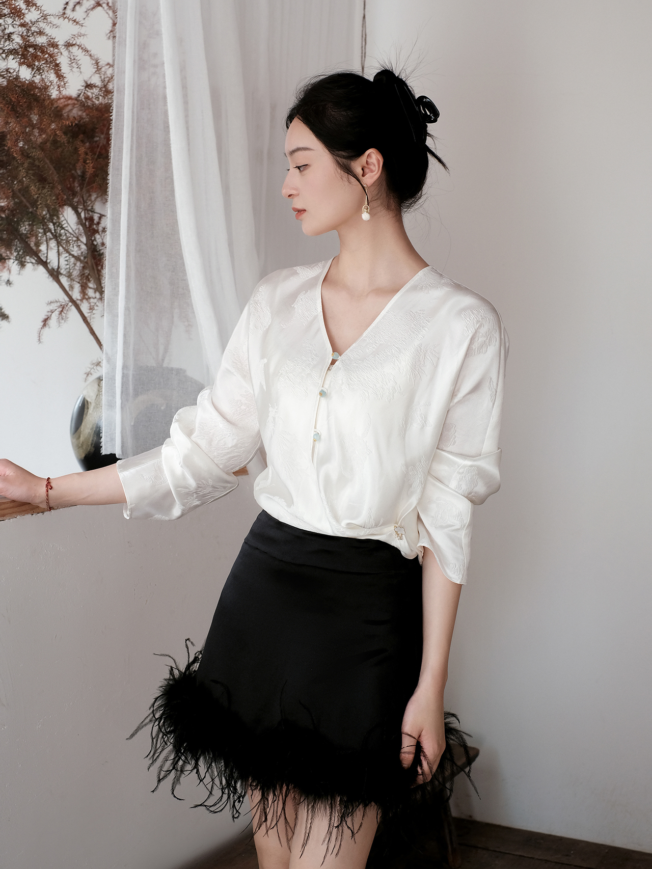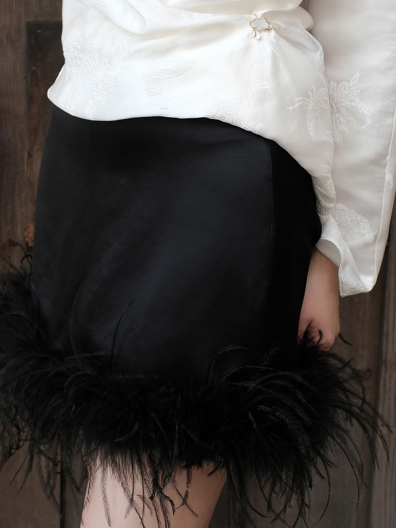 盛唐牡丹| 丝毛配鸵鸟毛短裙(鸵鸟毛可拆卸)