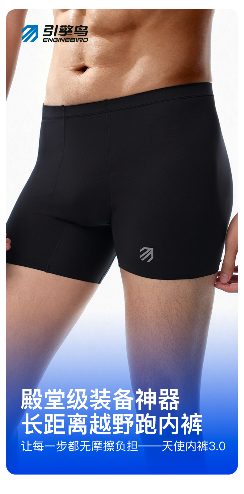 引擎鸟天使内裤3.0男女高密度超薄面料四分短裤速干防磨越野跑步短裤
