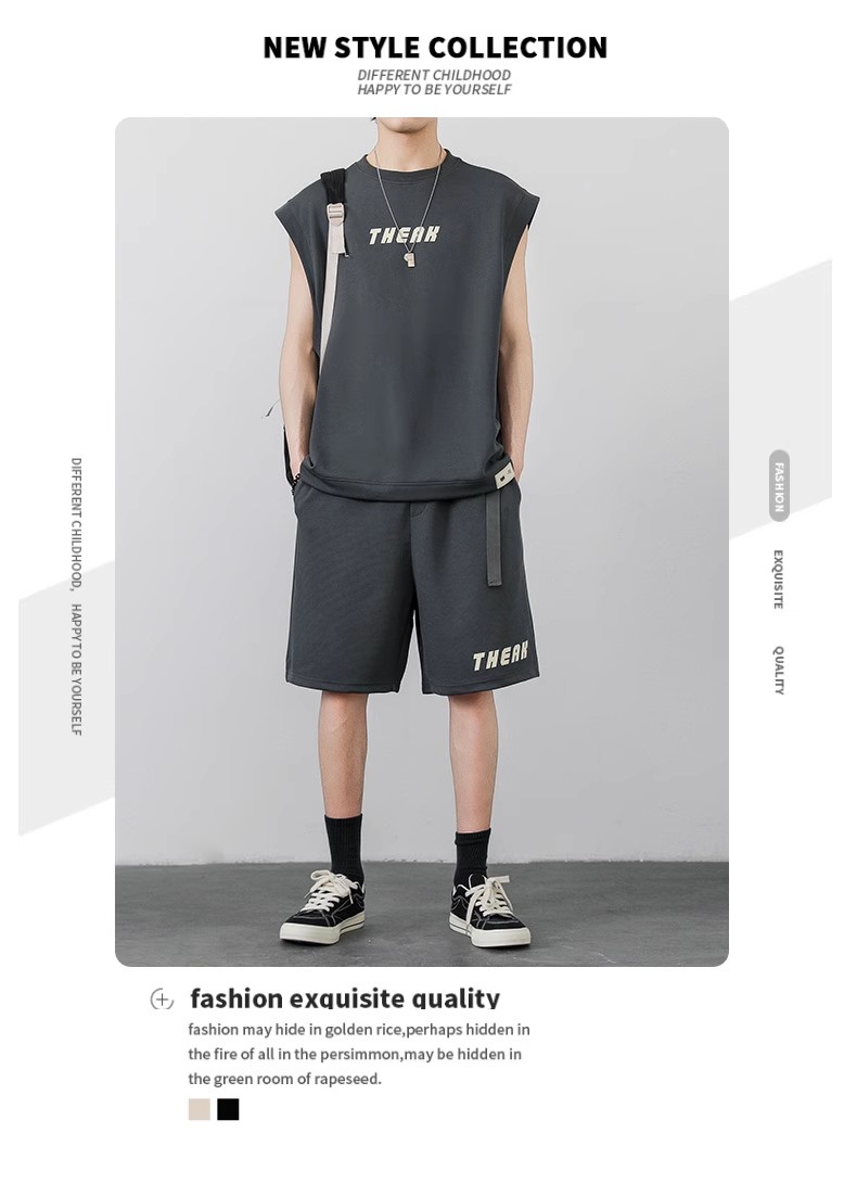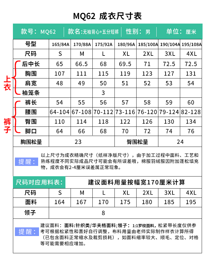 裁缝学苑MQ62无袖圆领坎肩背心短裤套装纸样男装两件套样板图纸
