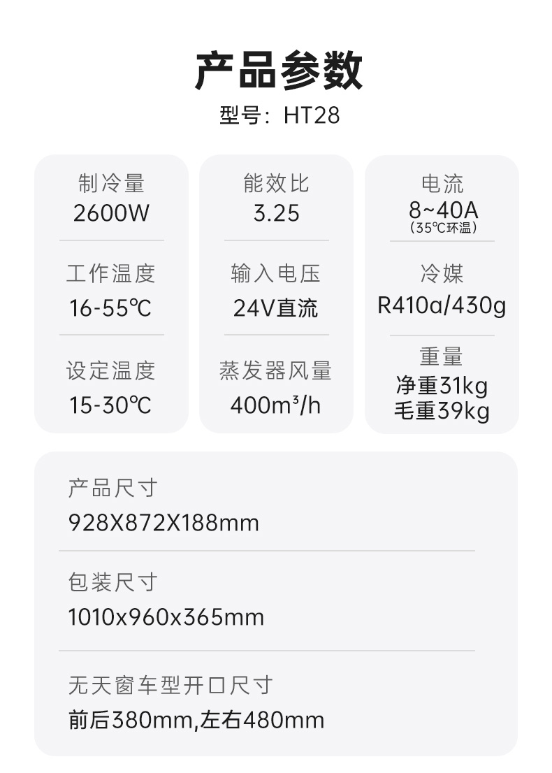 【25新款】歌谷 HT28 顶置一体驻车空调 24V直流 26000W 单冷 【一年整机联保】