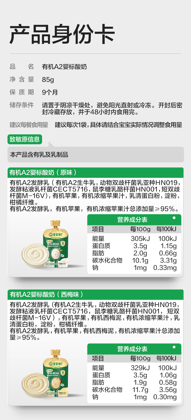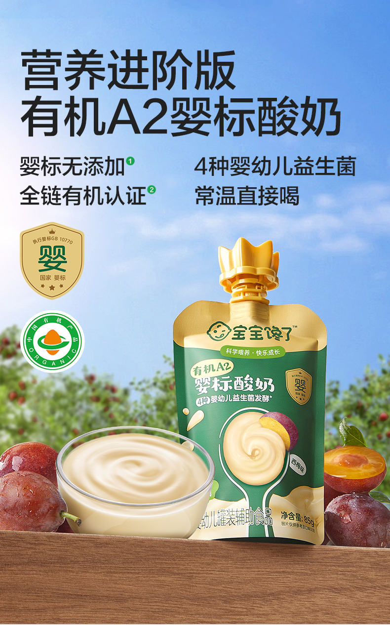 宝宝馋了有机A2婴标酸奶(原味/西梅味/蓝莓味/草莓味)85g