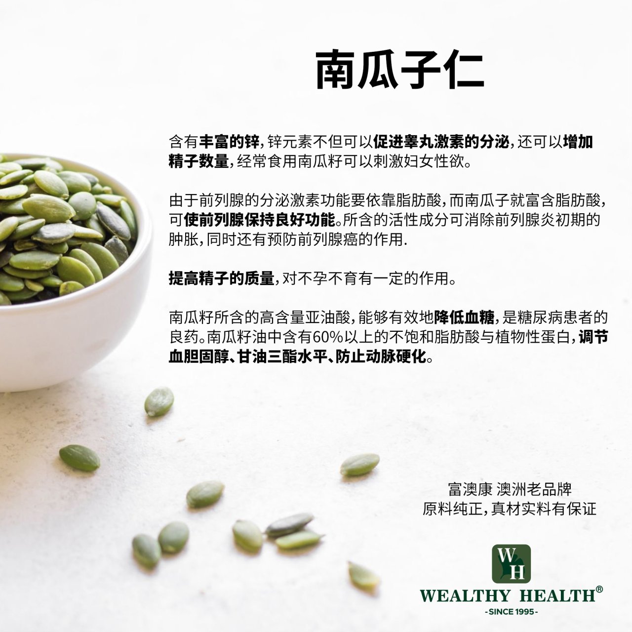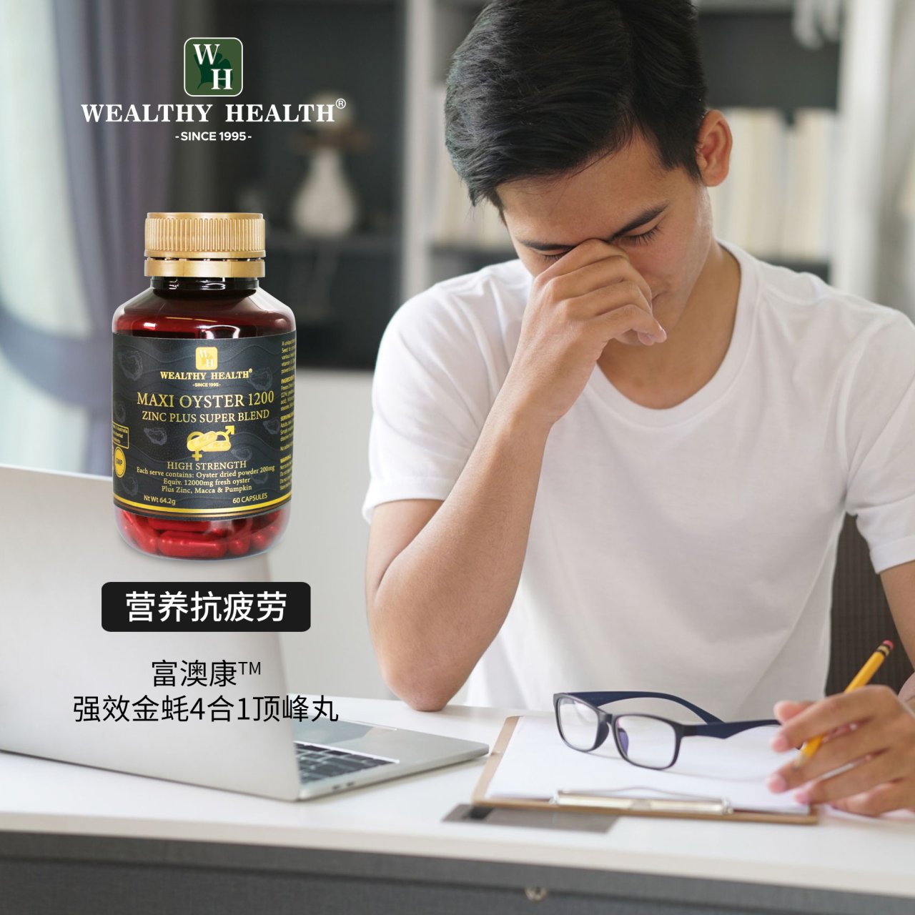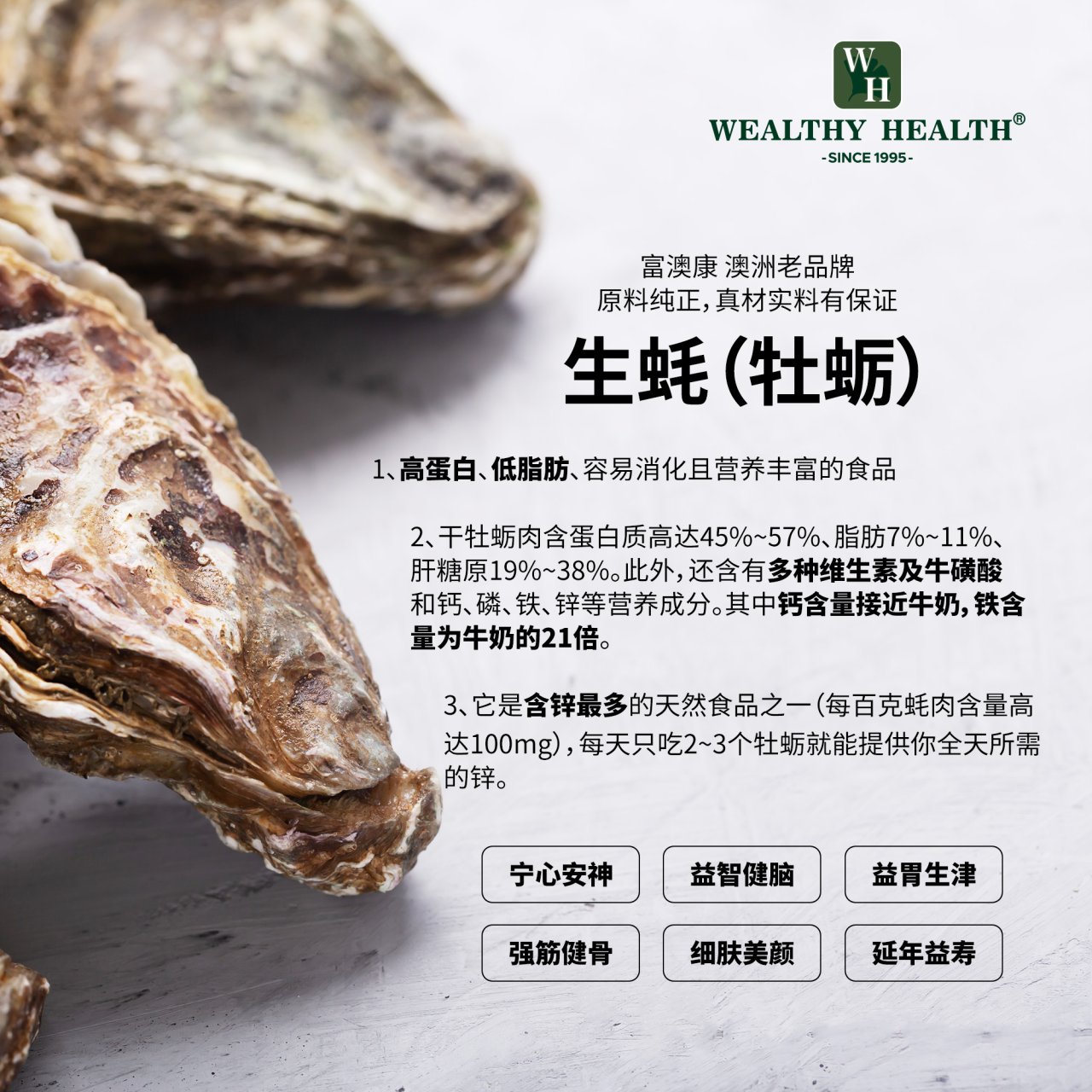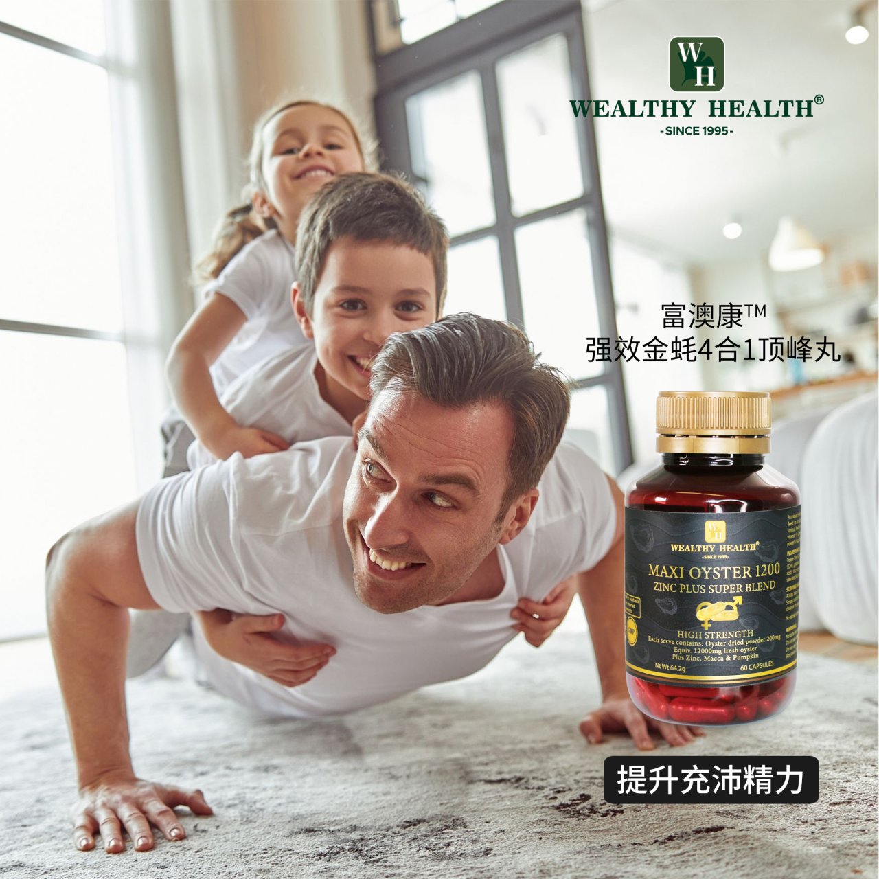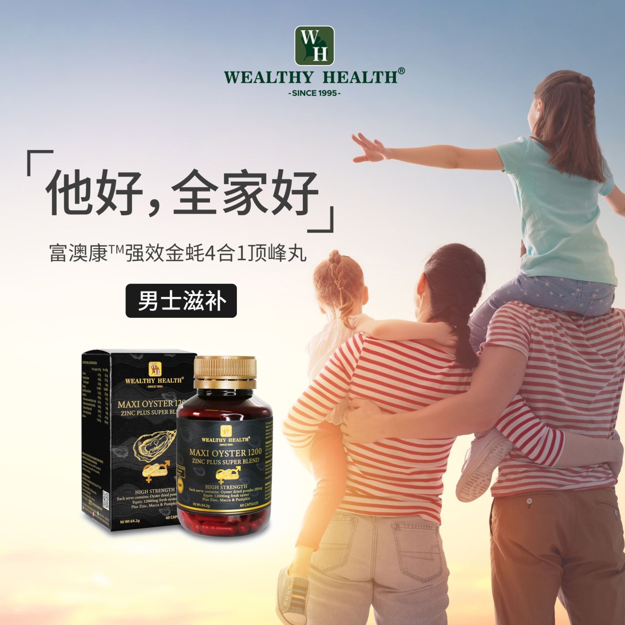 Wealthy Health生蚝精玛卡南瓜锌钙镁(补肾强精,益气提神)60粒