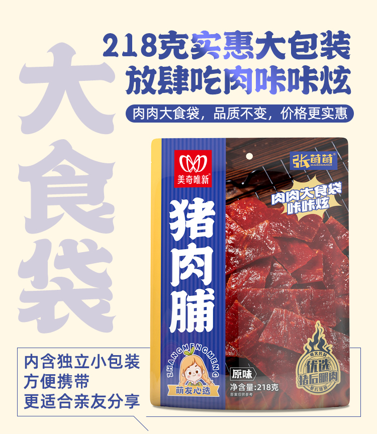 【休闲食品】218克大包装猪肉脯 【拍下赠48g肉脯脆脆芝麻味1袋】