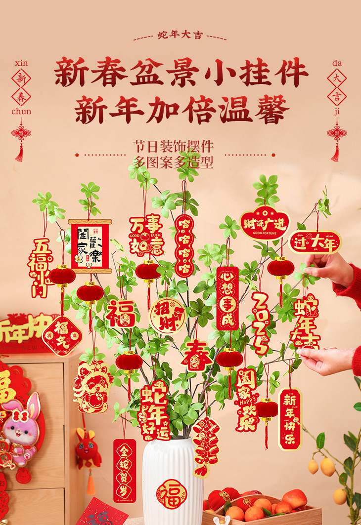 【蛇年限定❗️国潮喜庆小挂件】新年装饰品,元旦盆景发财树上,新春节客厅布置小灯笼,福字春联红包小对联,过年也仪式感满满年货特价清仓器